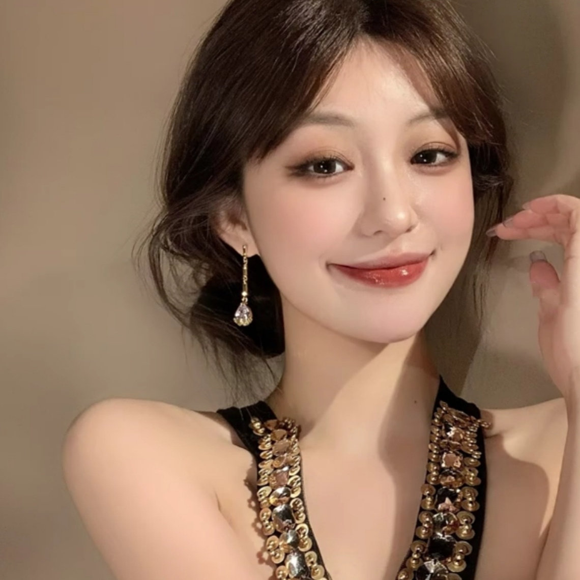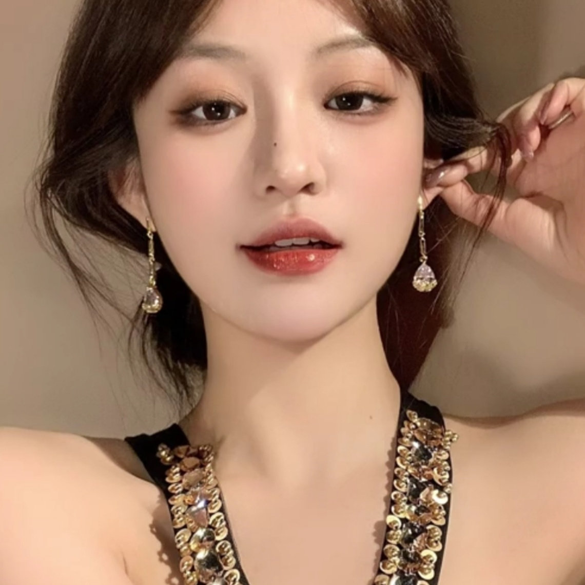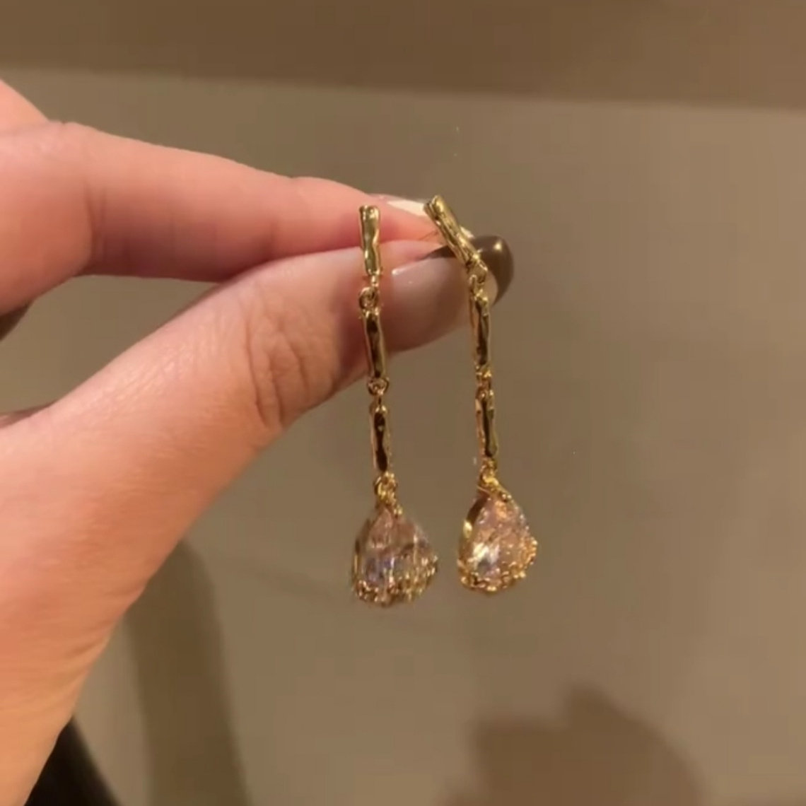 📚 金色长条锆石水滴耳钉耳环女设计感清冷感时尚配饰2025新款耳坠潮
