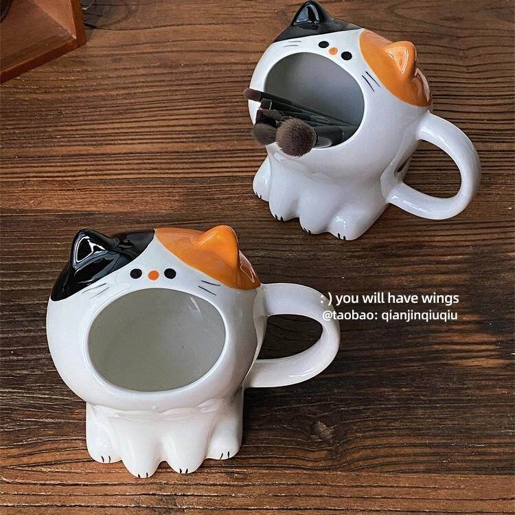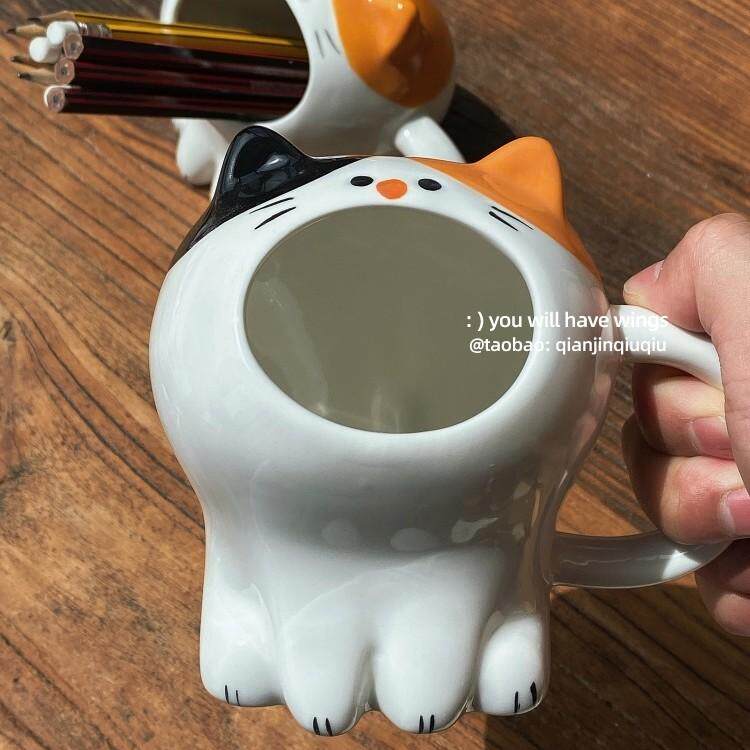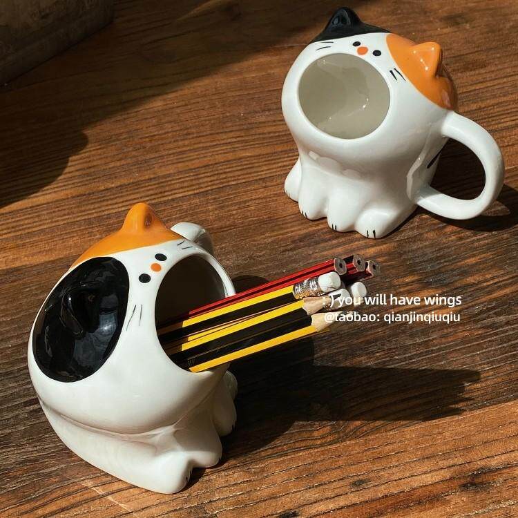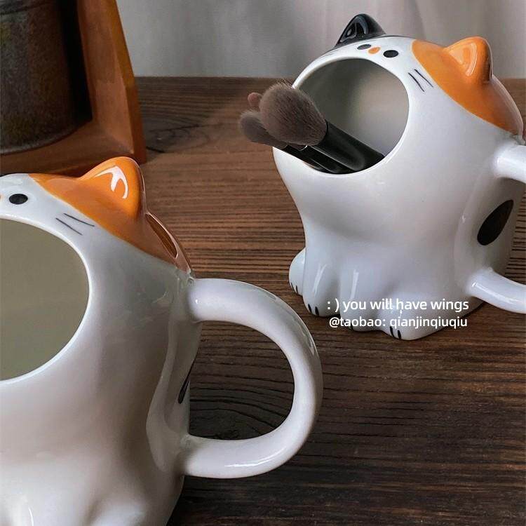 📚 浅瑾秋秋 卡通哇哇猫咪可爱造型收纳盒笔筒化妆笔收纳盒摆件装饰