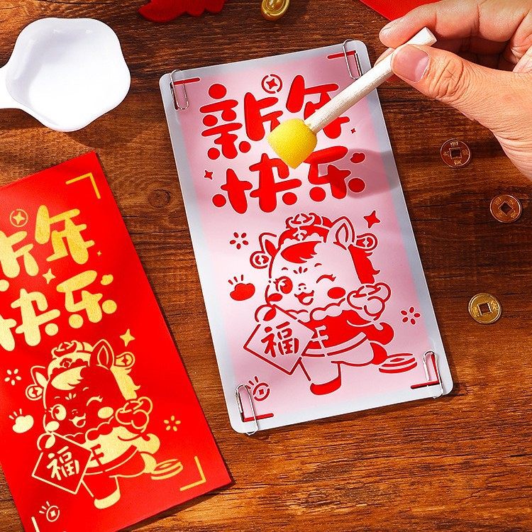 📚 马年红包拓印diy材料包幼儿园2026元旦亲子活动拓印年画镂空字板