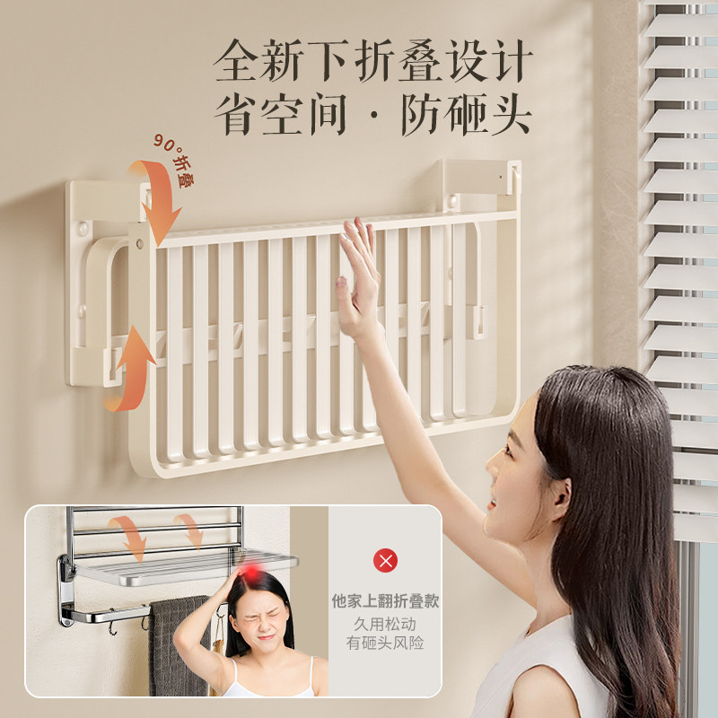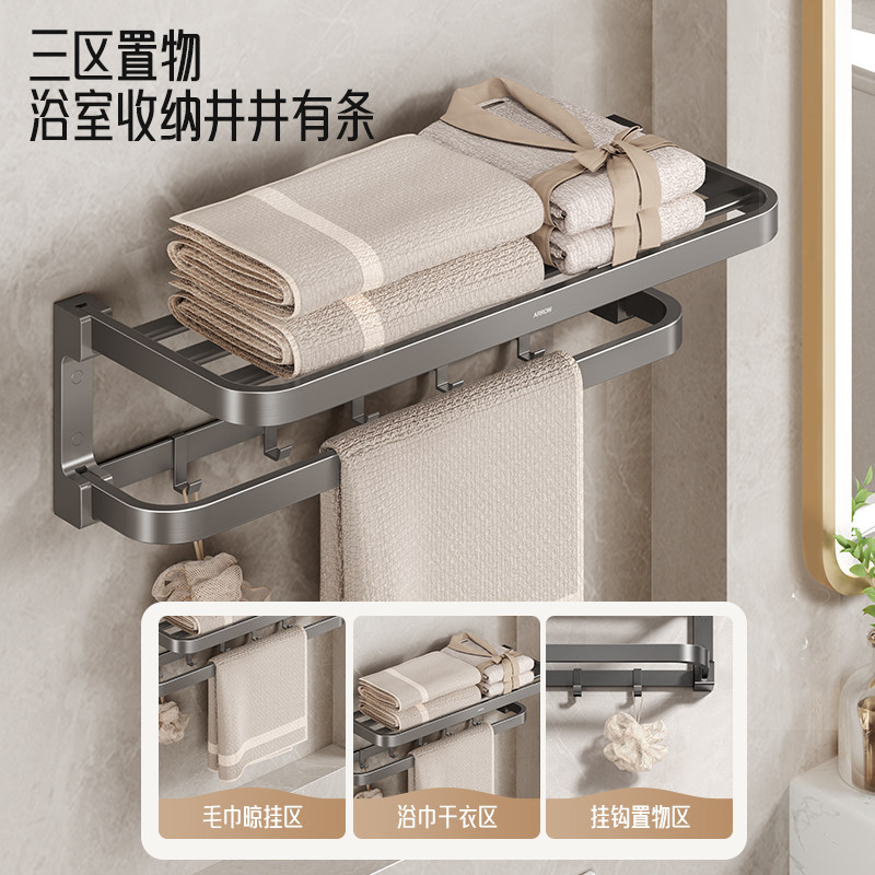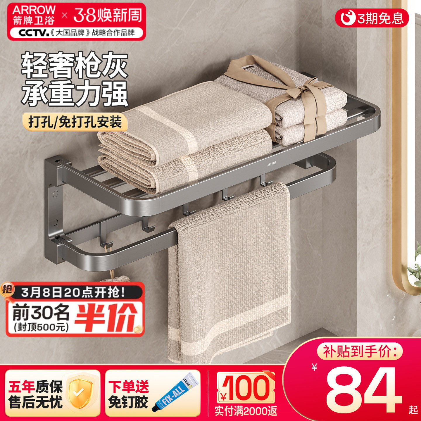 📚 箭牌毛巾架免打孔浴巾架卫生间浴室置物架枪灰可折叠五金挂件国补