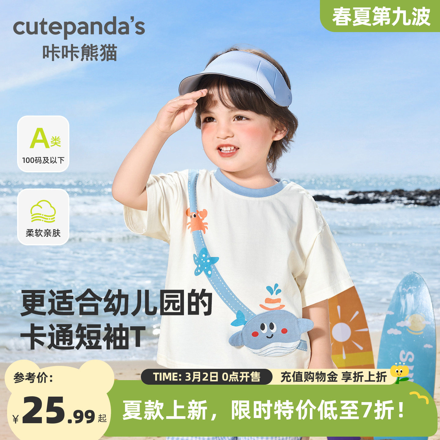 📚 咔咔熊猫儿童短袖T恤夏季宝宝卡通印花夏装上衣男童女童夏款衣服