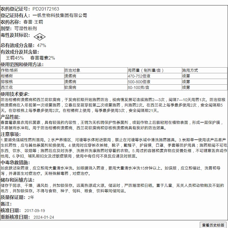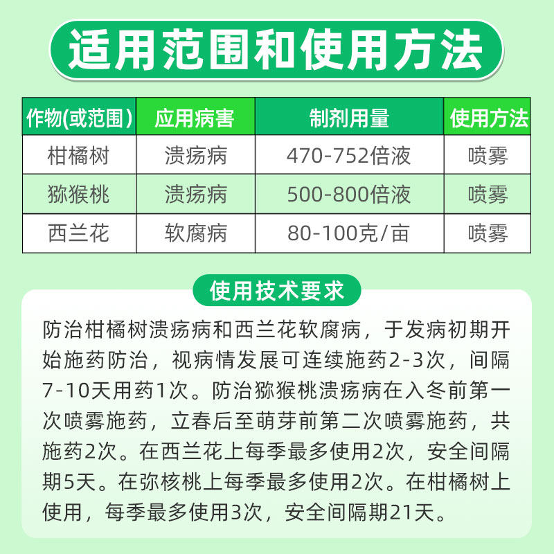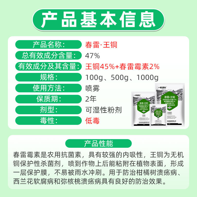 📚 一帆速补47%春雷霉素王铜柑橘树猕猴桃溃疡病西兰花软腐病杀菌剂