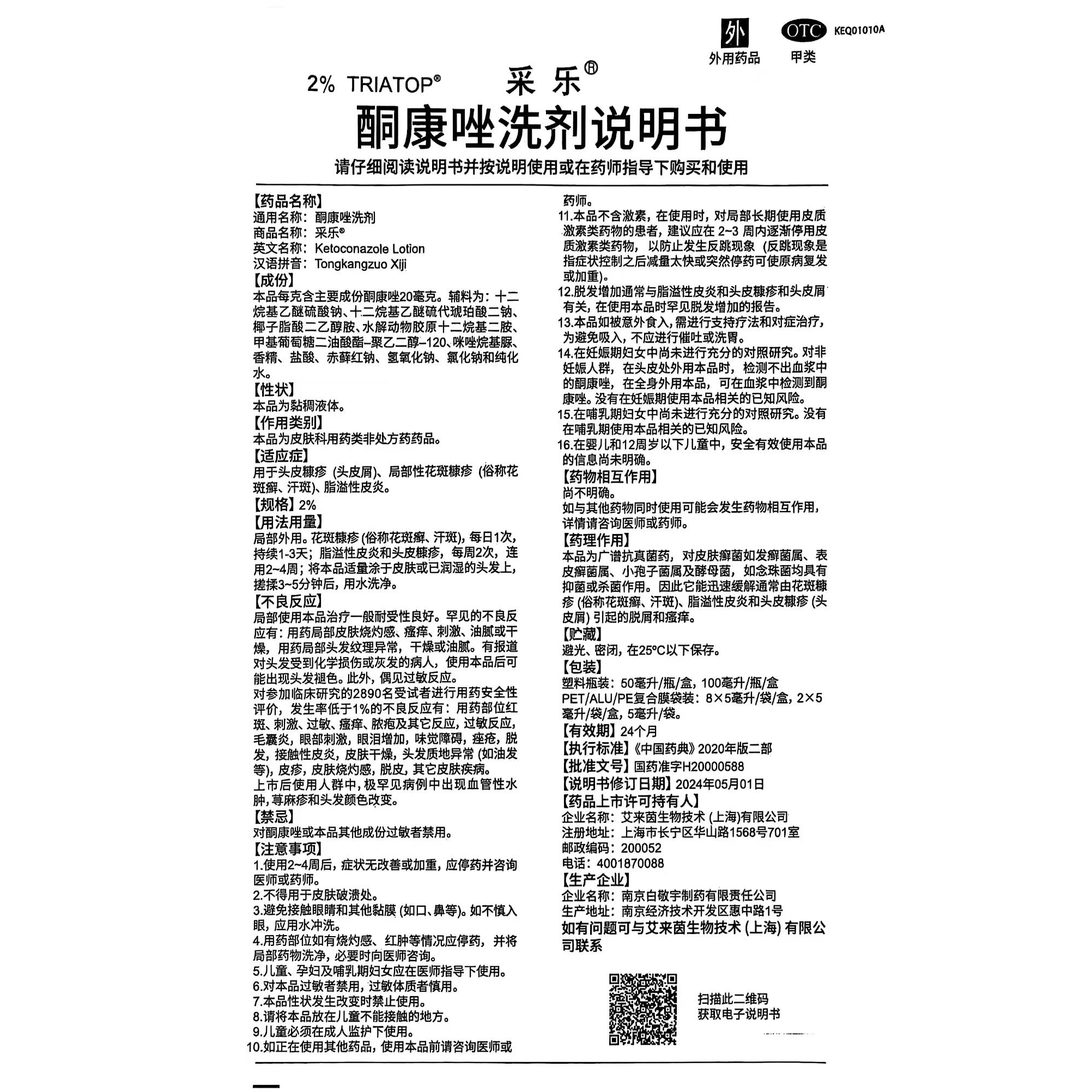 📚 采乐酮康唑洗剂 2%50ml头皮糠疹头皮屑花斑癣脂溢性皮炎