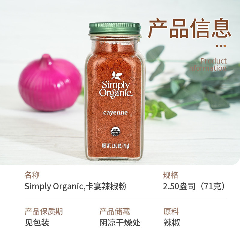📚 美国Simply Organic卡宴辣椒粉零卡零脂无盐烧烤调料健身鸡胸调味