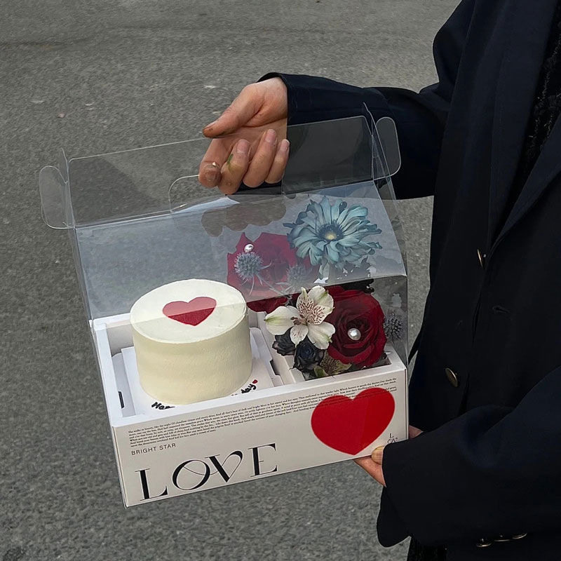 📚 情人节折叠花艺礼盒花束插花盒透明PVC手提鲜花蛋糕花盒一体盒