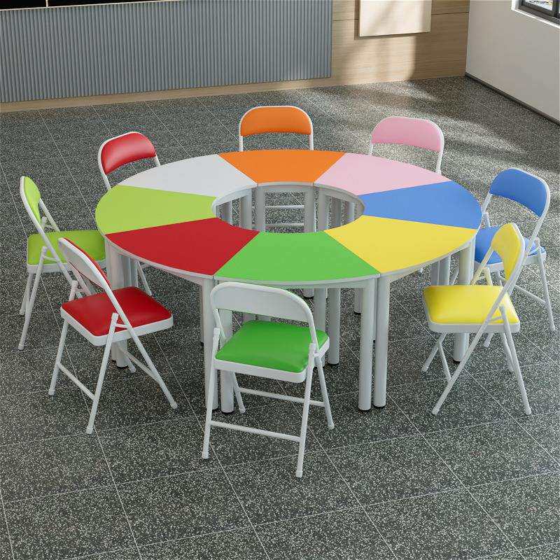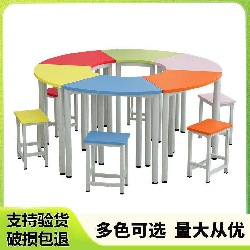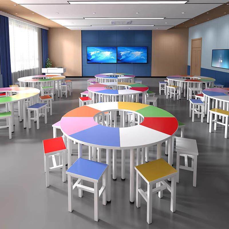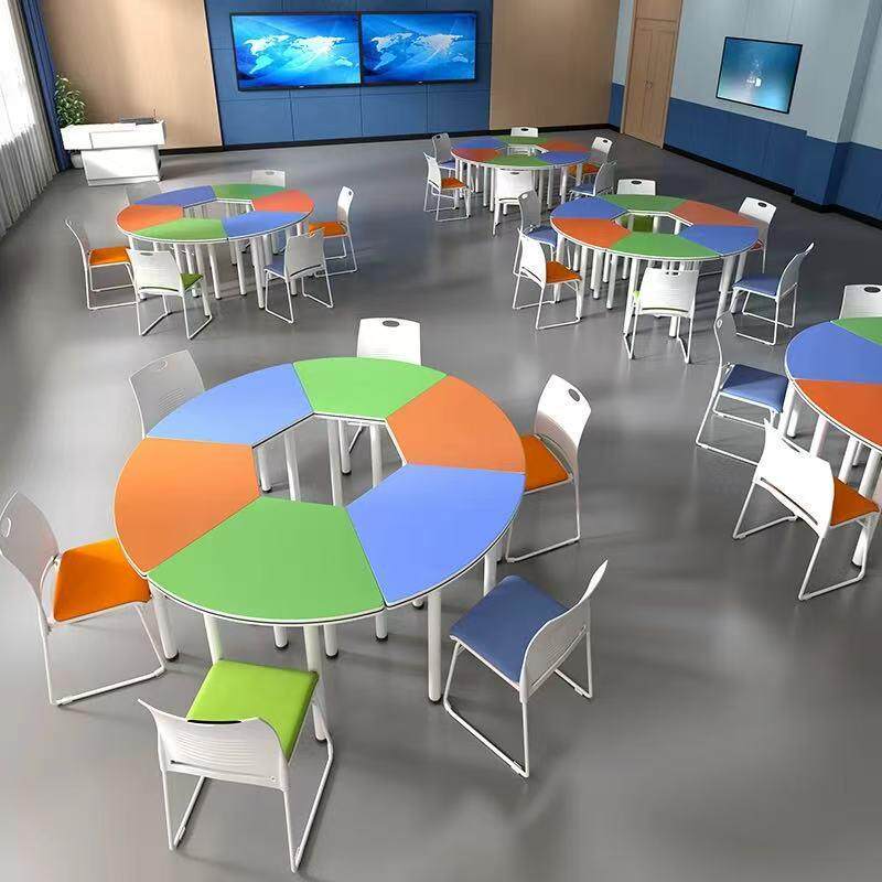 📚 心理室六边形桌椅扇形拼接圆形学生彩色学校辅导团体活动多人课桌