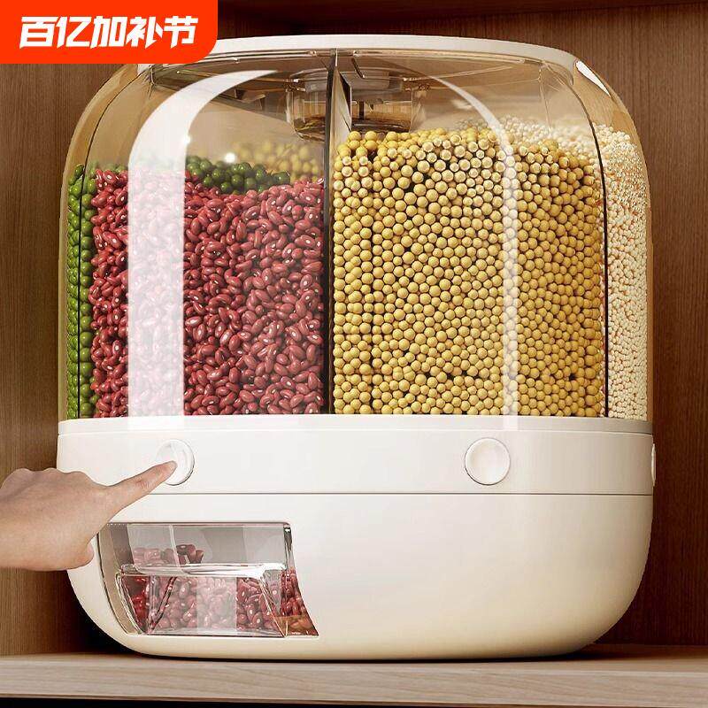 📚 新款五谷杂粮收纳盒米桶家用防虫防潮密封旋转储存罐分格粮食大米