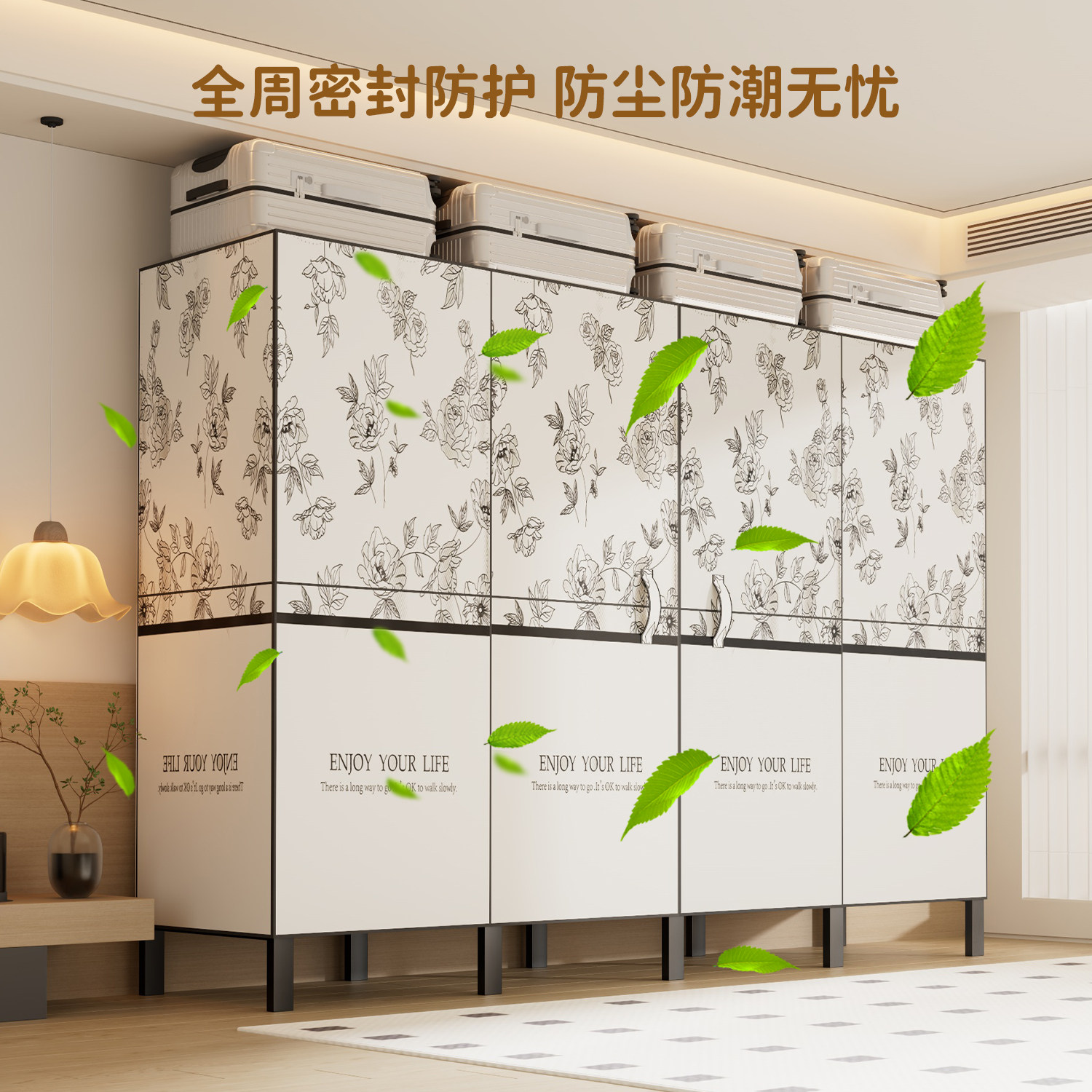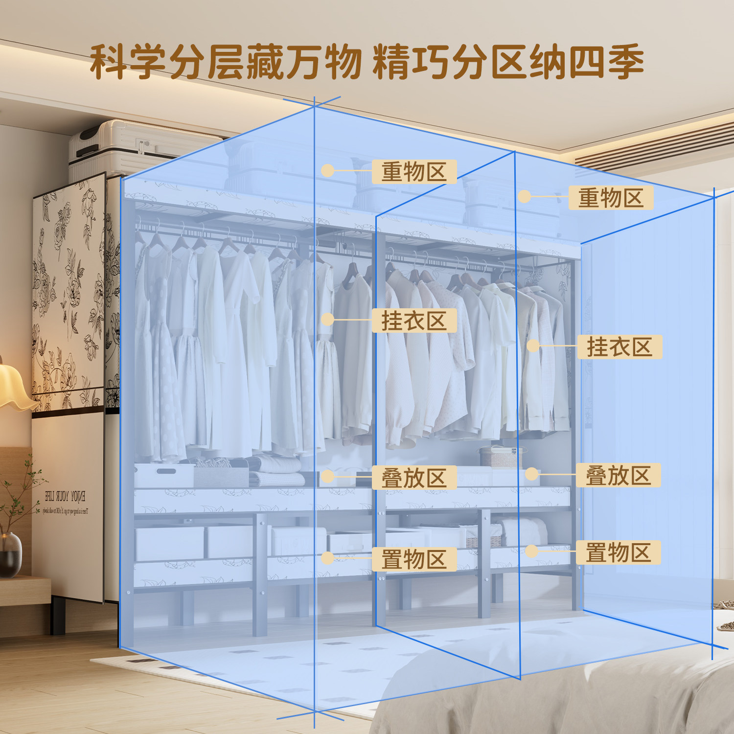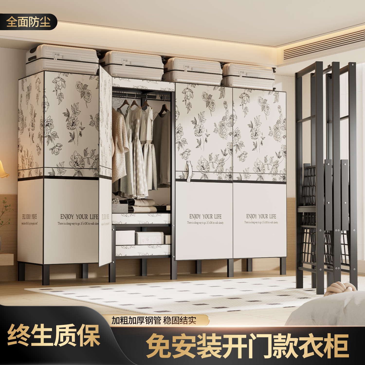 📚 衣柜家用卧室出租房免安装简易组装折叠金属框架全钢制衣柜布衣柜