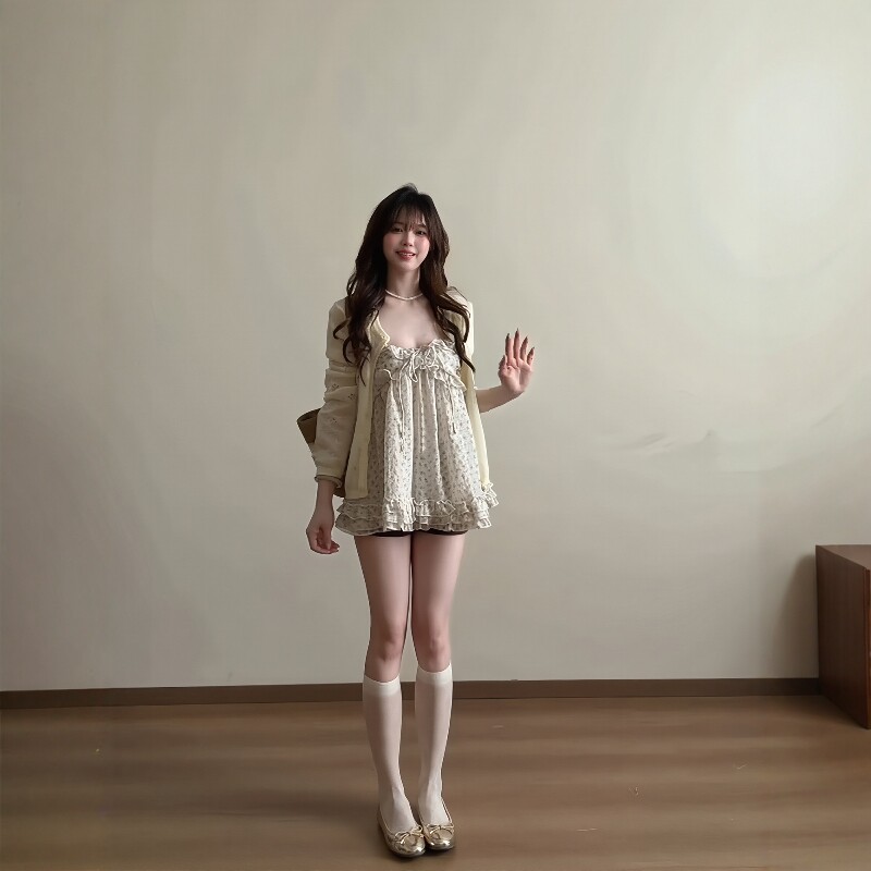 📚 韩系小清新碎花吊带背心轻薄款针织防晒针织开衫女纯欲风百搭上衣