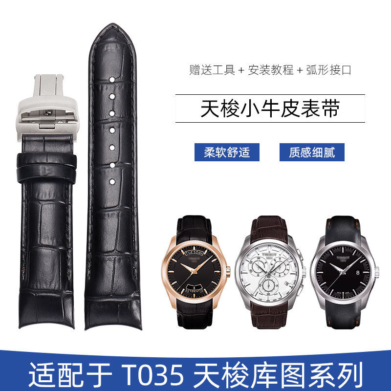 📚 适配天梭T035库图真皮表带1853原款T035627A 410A 407a鳄鱼纹表带