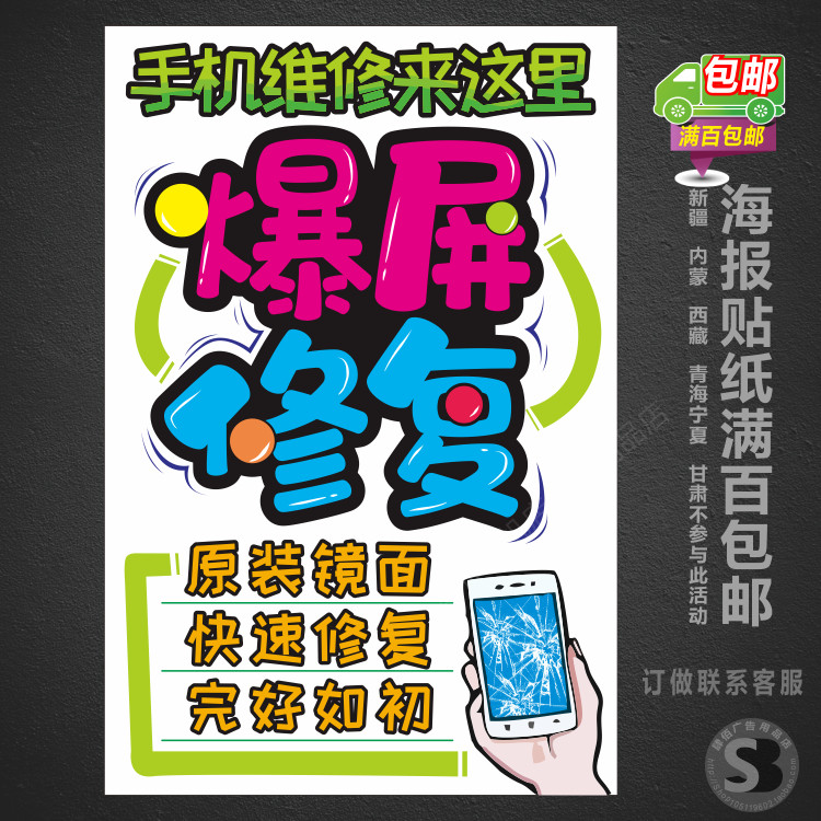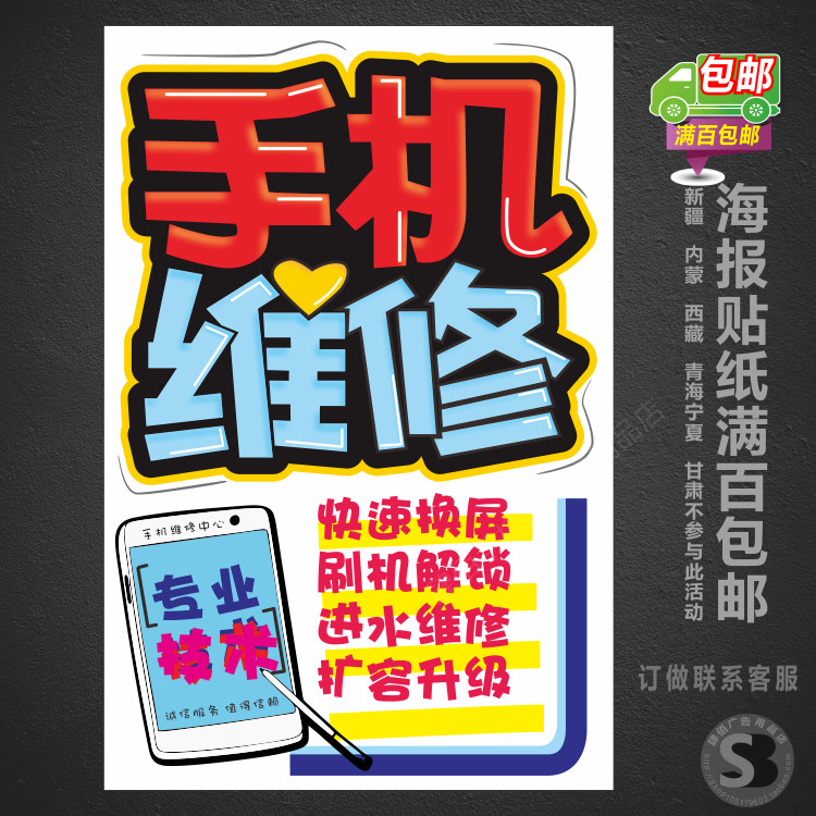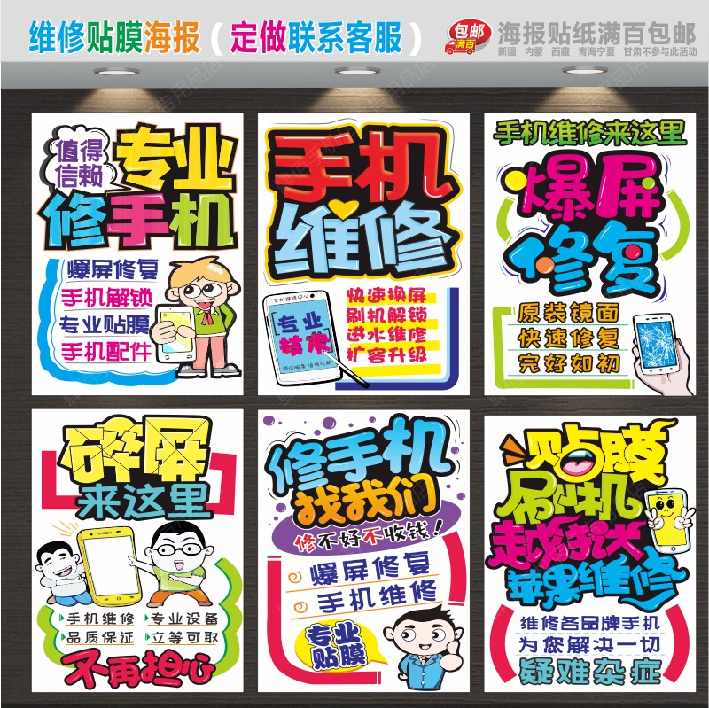 📚 手机维修配件海报贴纸 广告海报画手机店广告贴纸SB377