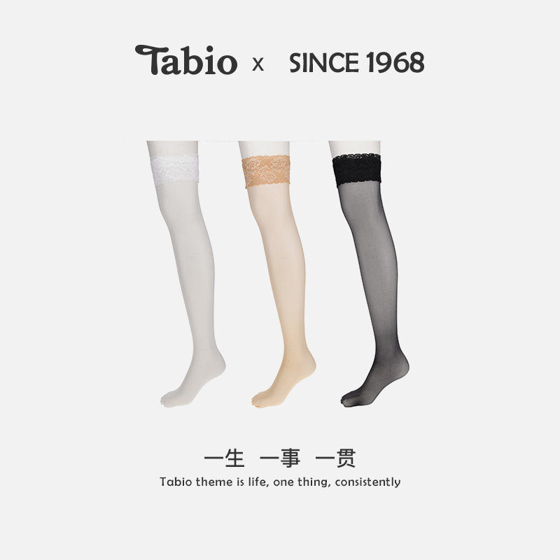 📚 Tabio长筒丝袜女薄款防勾丝防滑蕾丝花边美腿显瘦性感高筒过膝袜