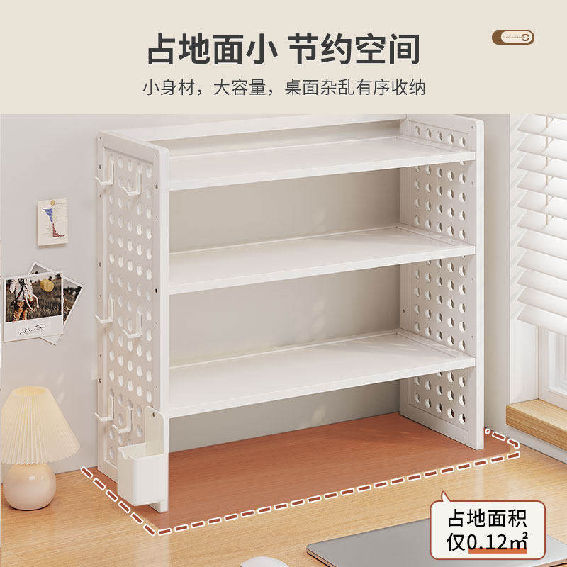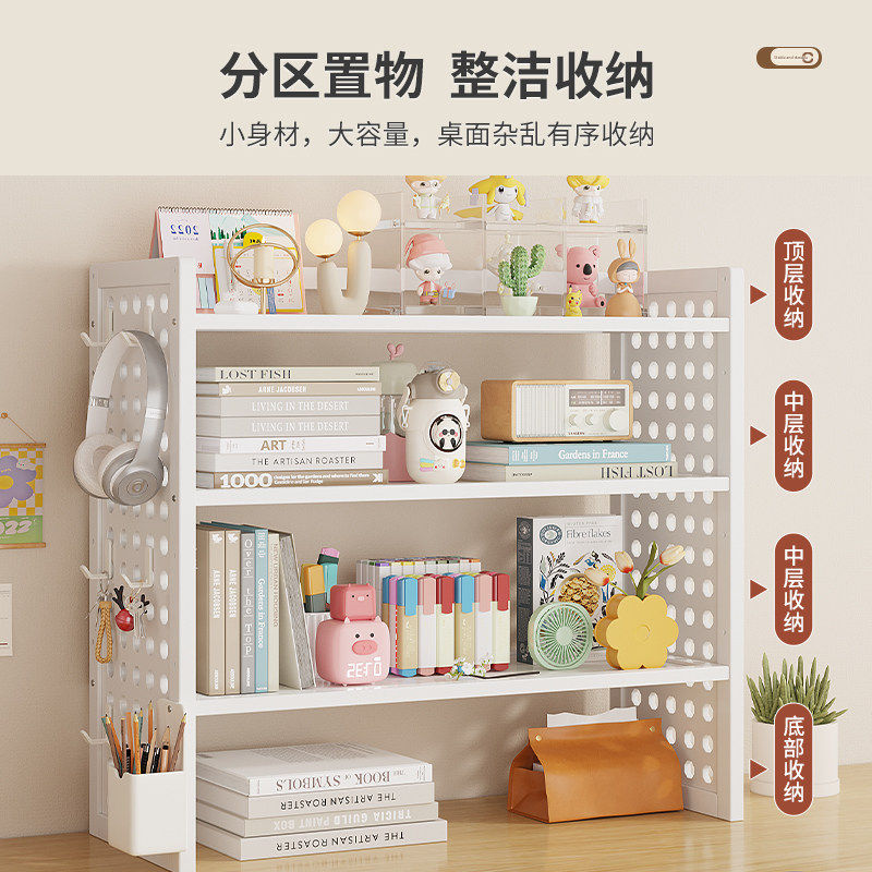 📚 学生桌面书架2025置物架简易多层洞洞板书柜收纳整理架子二层白色