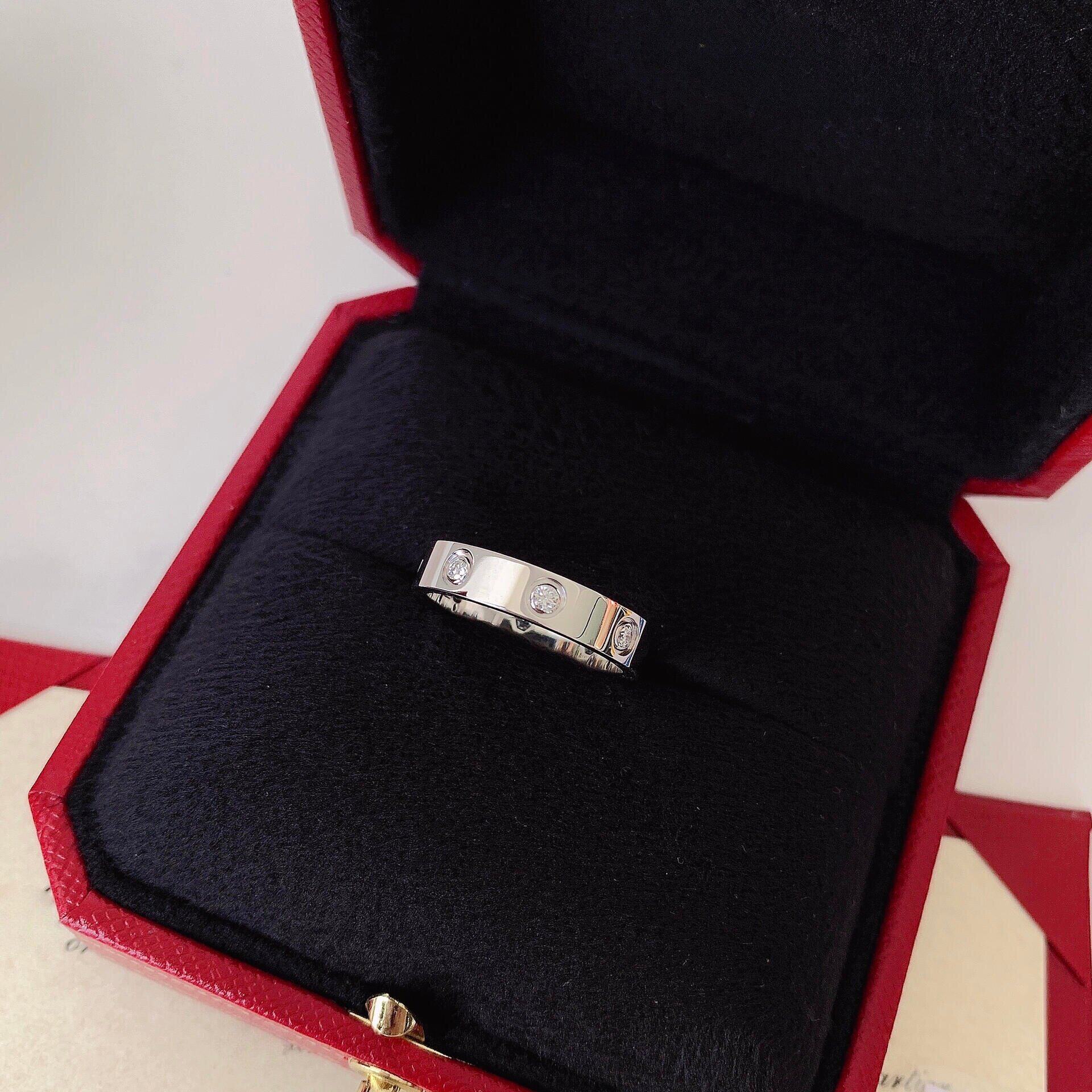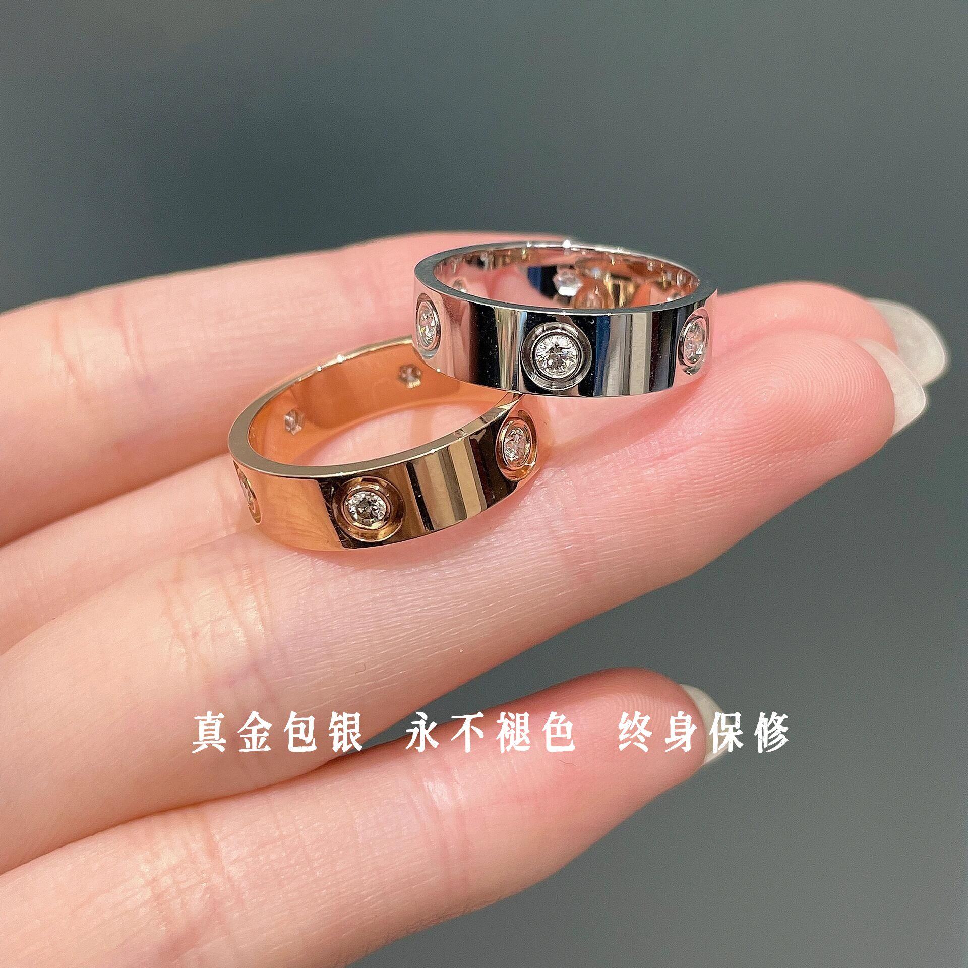 📚 18K金玫瑰金戒指女AU750彩金LOVE经典款男戒白金情侣款戒指送女友