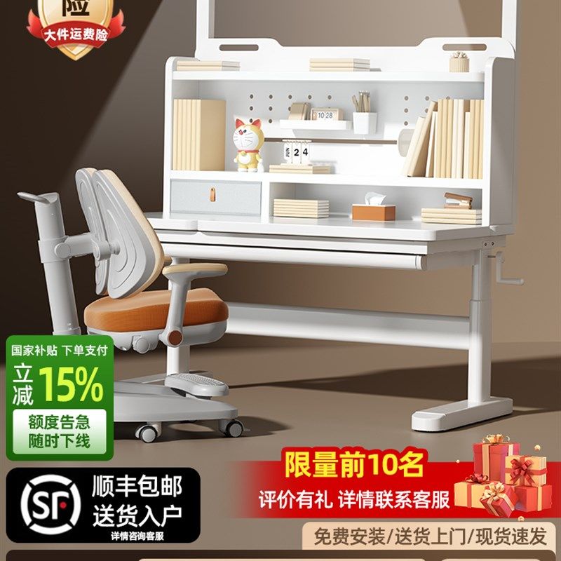 📚 龙承匠人儿童学习桌书桌子小学生家用课桌椅子O套装新款实木升降