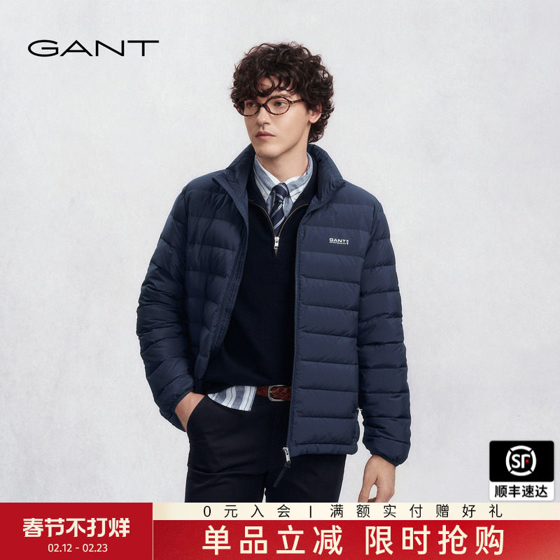 📚 GANT/甘特冬季新款男士短款轻量立领纯色绗缝白鸭绒羽绒服外套