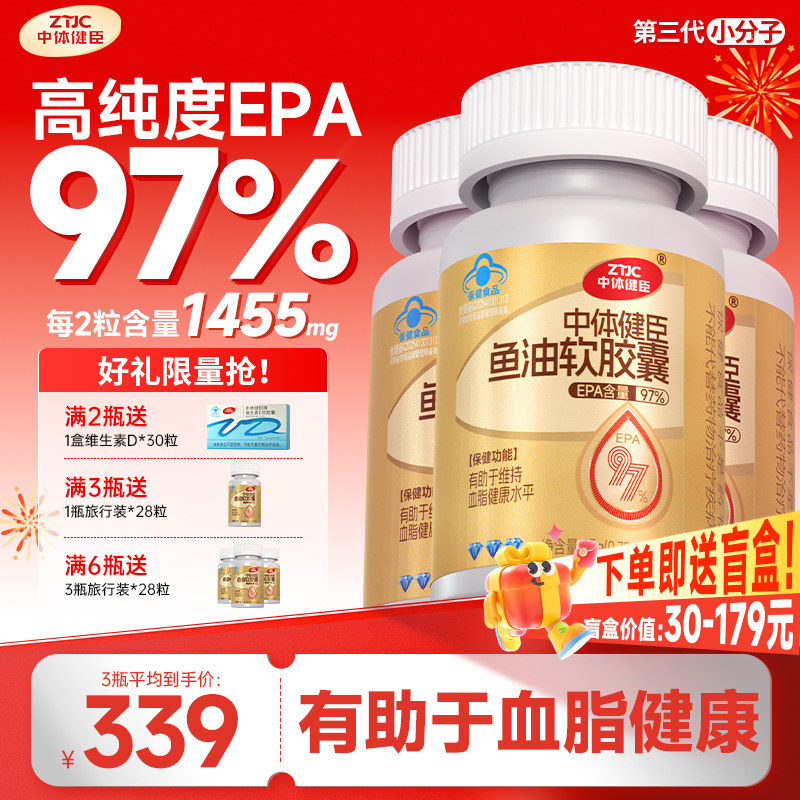 📚 中体健臣97%高纯度EPA鱼油omega3深海鱼油软胶囊降成人辅助控血脂