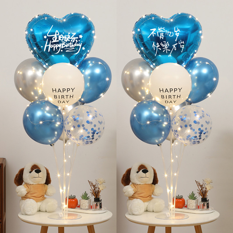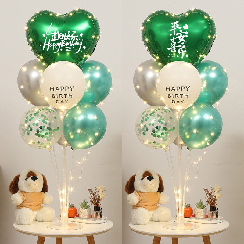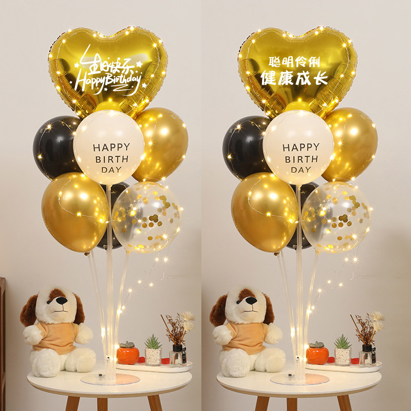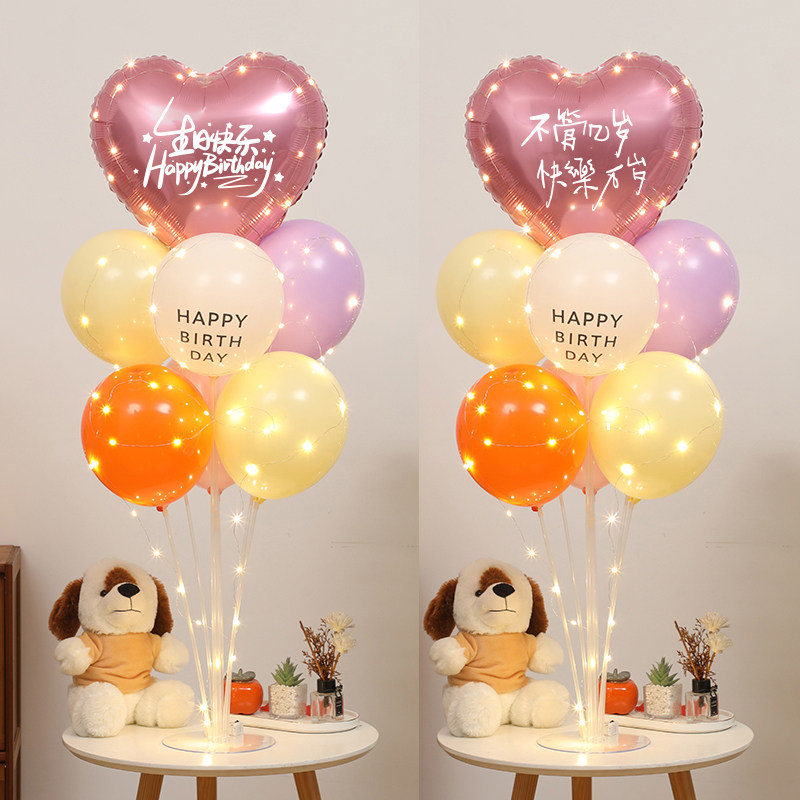 📚 发光生日装饰桌飘气球生日趴体派对氛围心形桌面摆件立柱场景布置