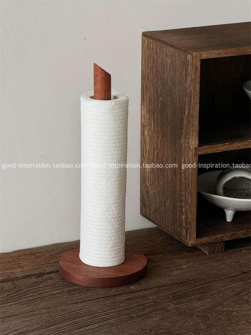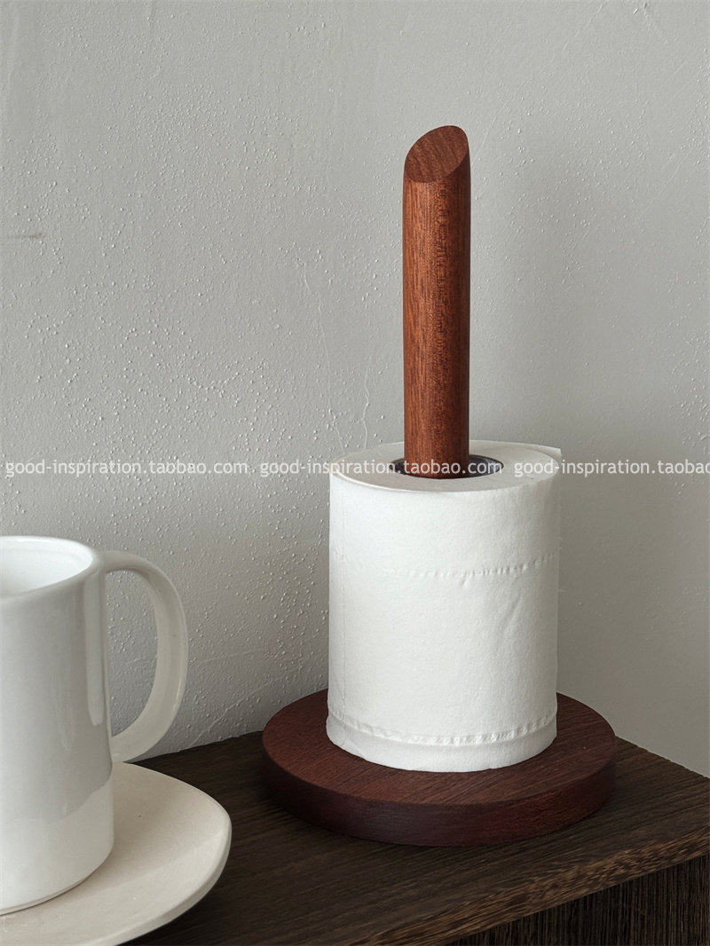 📚 外贸 乌檀木立式卷纸架 厨房餐桌纸巾架免打孔黑胡桃色实木制收纳