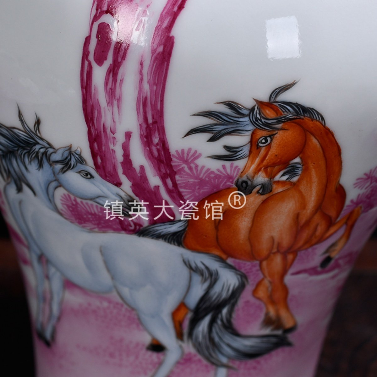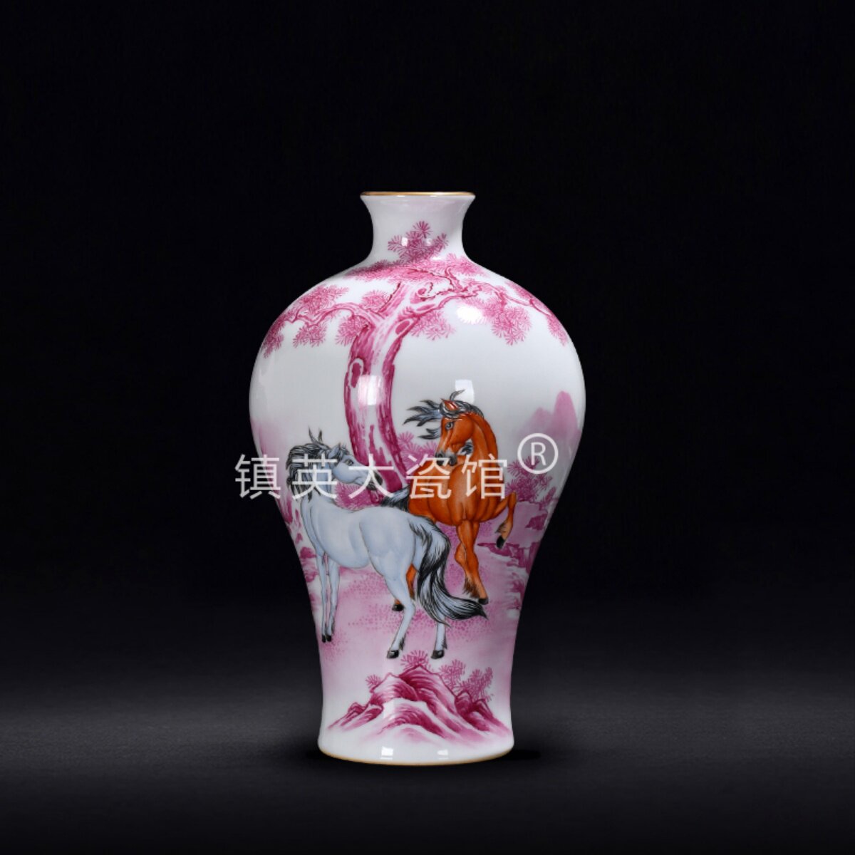 📚 景德镇陶瓷花瓶仿古瓷器手绘玛瑙红马到成功博古架公司摆件中式