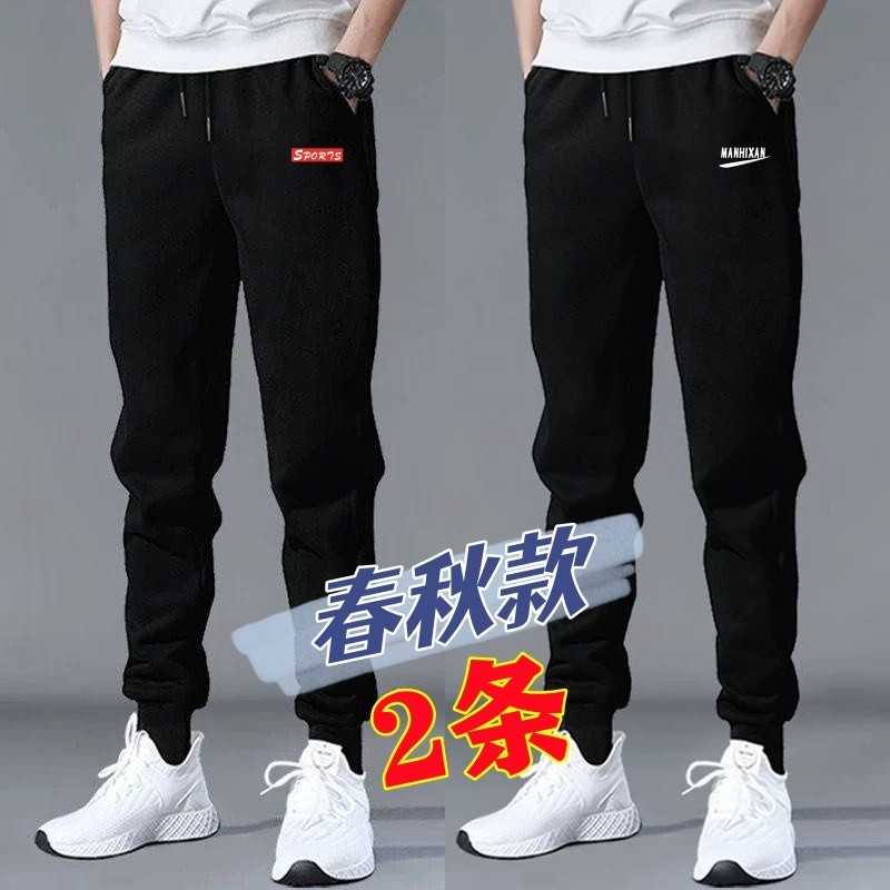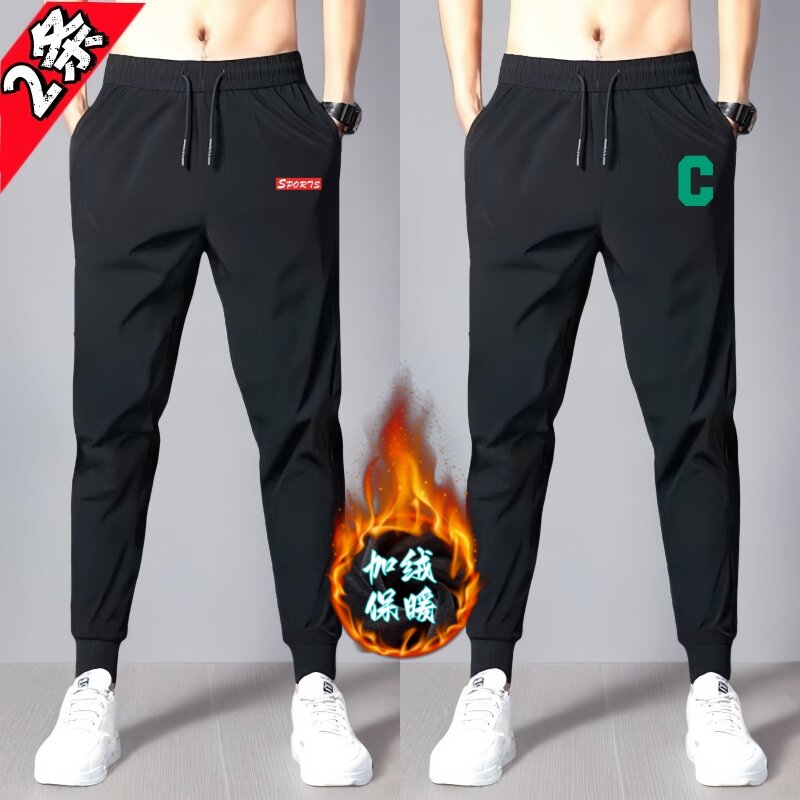 📚 耐磨运动裤男黑色加绒弹力休闲长裤宽松大码束脚卫裤工作秋冬潮牌