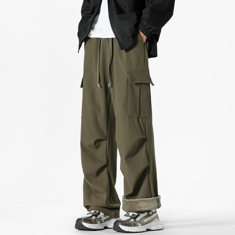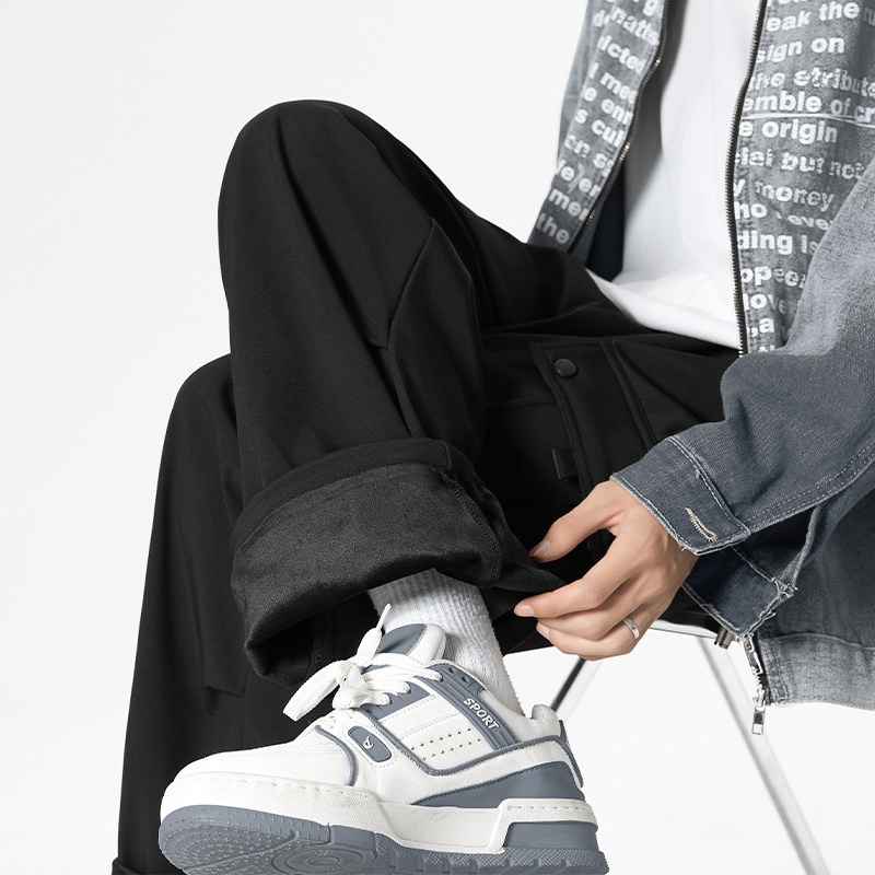 📚 【于适同款】BONELESS加绒加厚裤子男士冬季宽松休闲潮牌直筒运动