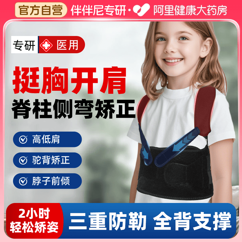 📚 儿童脊柱侧弯矫正器青少年医用开肩带驼背矫姿带神器支具固定护具