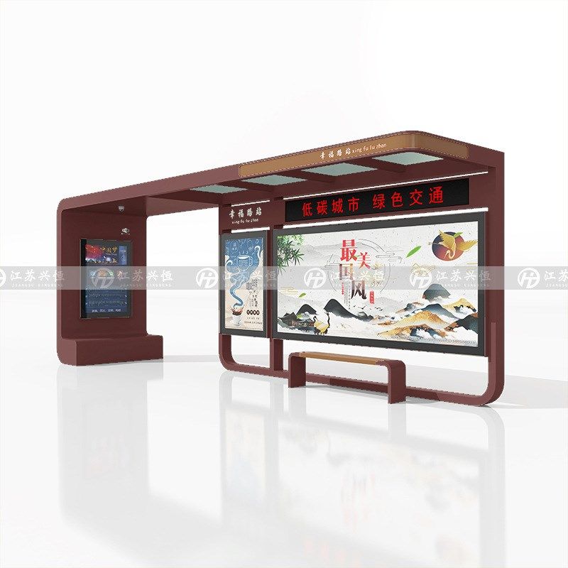 📚 定制仿古公交站h台候车厅智慧LED显示屏不锈钢公交站牌滚动灯箱