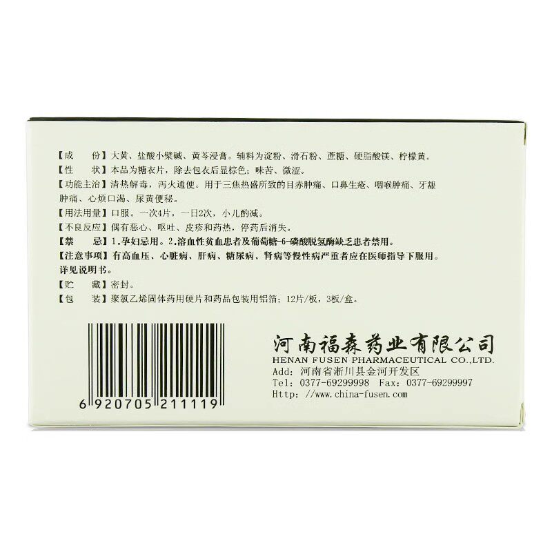 📚 福森 三黄片36片 清热解毒泻火通便口鼻生疮咽喉牙龈肿痛口渴便秘