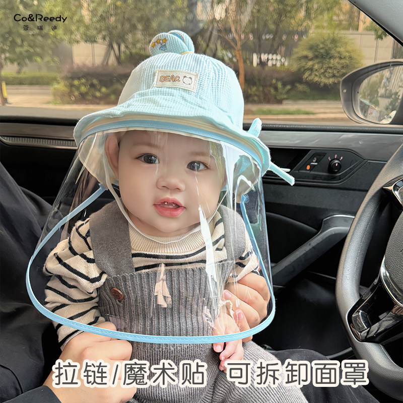 📚 初生婴儿防护帽脸罩小月龄宝宝防飞沫面罩新生儿防疫帽可拆卸面屏