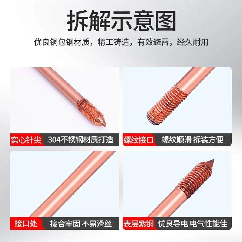 📚 避雷针接地用地针接地引下线铜包钢家用防雷接地棒Φ16Φ20Φ25