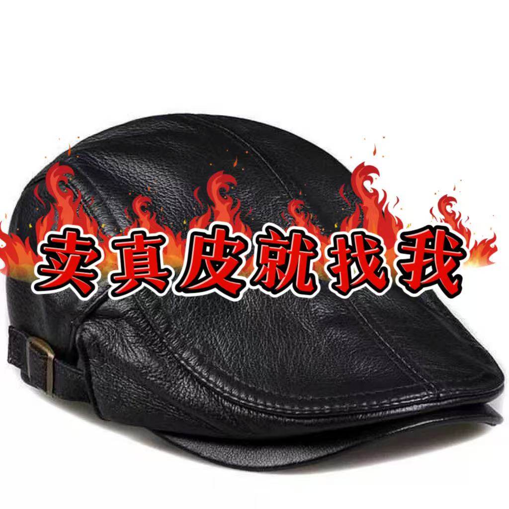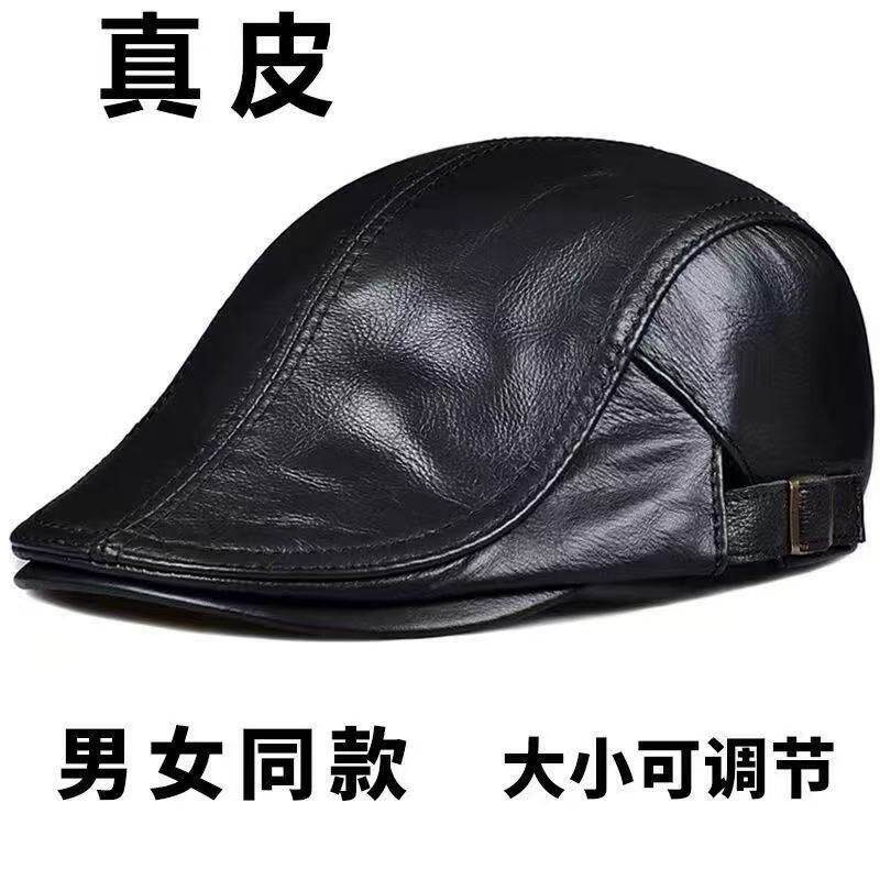 📚 皮帽子真皮牛皮帽子男士中老年人鸭舌帽秋冬季前进保暖贝雷帽薄款