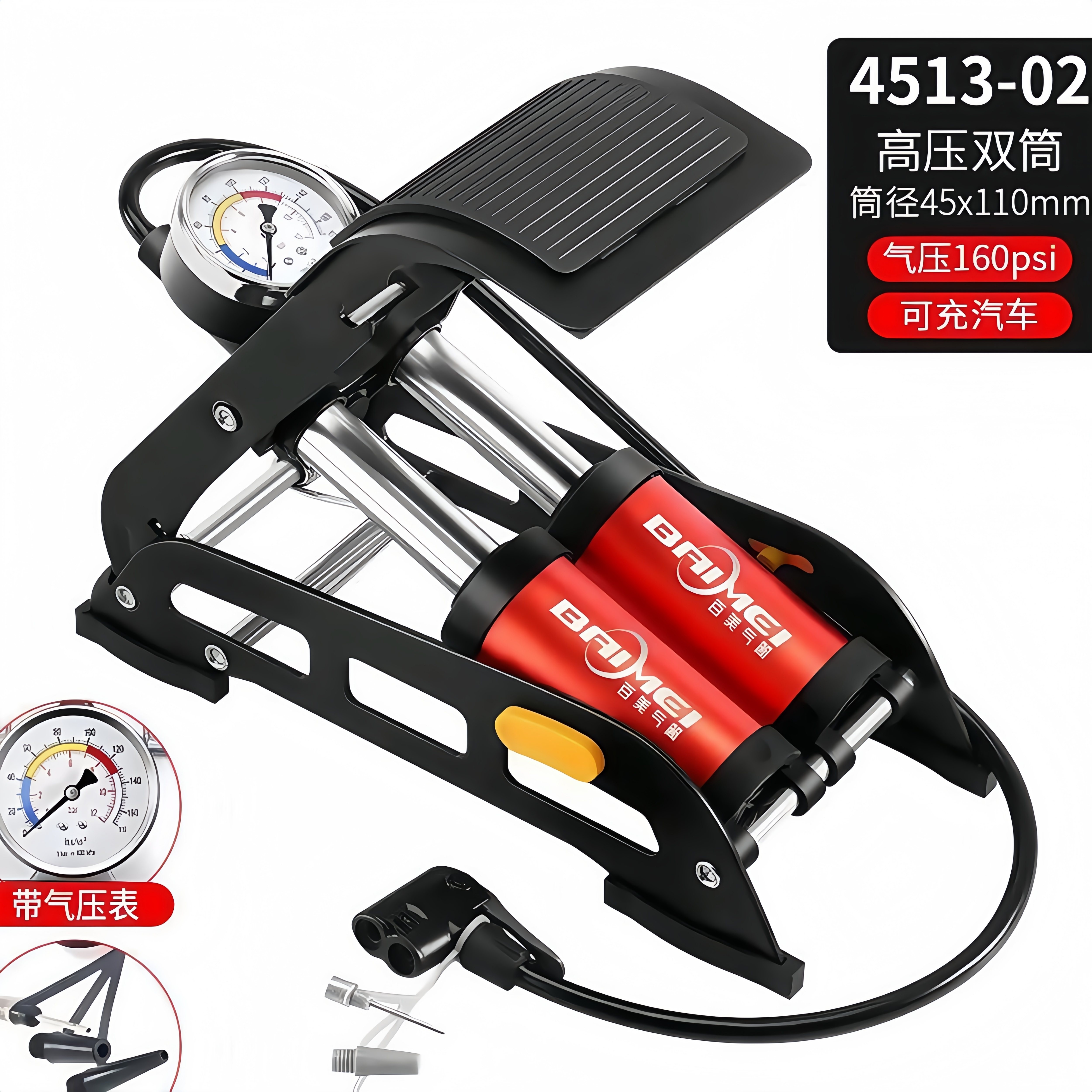 📚 双缸脚踩打气筒高压汽车车载充气泵电动车摩托车自行车篮球打气泵