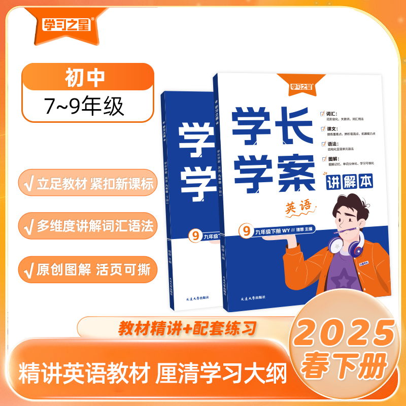 📚 学习之星学长学案初中英语同步教材精讲2025春新版上下册语法单词大全七年级八年级九年级外研版自学预习重点语句语篇练习中考