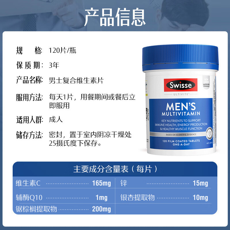 📚 Swisse澳洲男士复合维生素120粒综合增强提升抵御力成人男士补维B