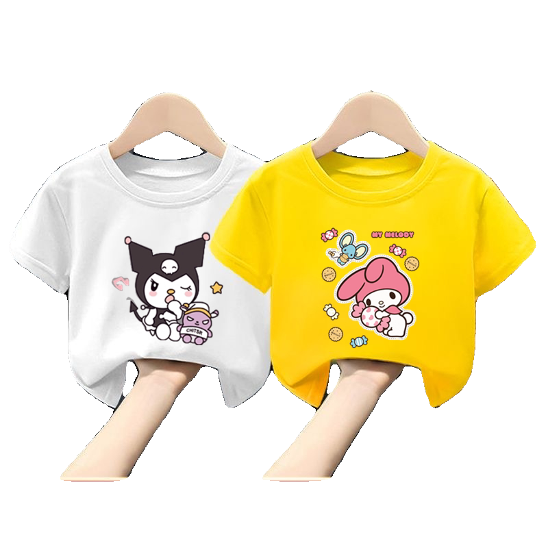 📚 100%童装纯棉女童t恤洋气上衣夏季新款卡通小童库洛米可爱短袖T恤