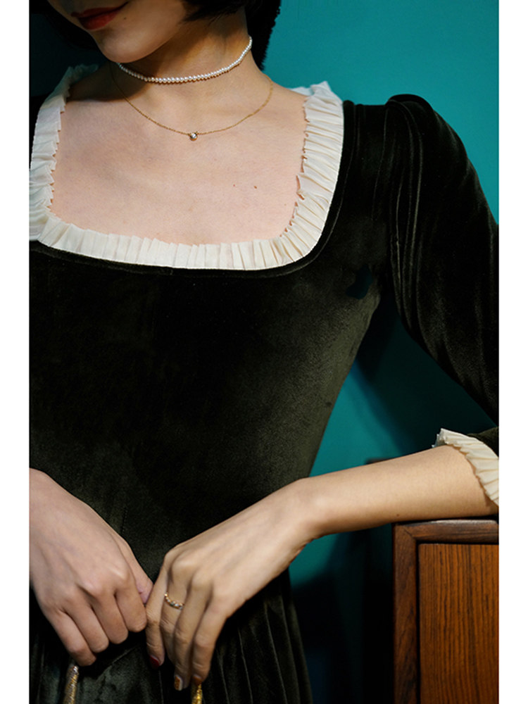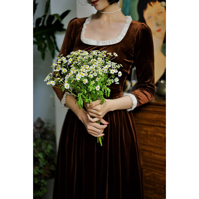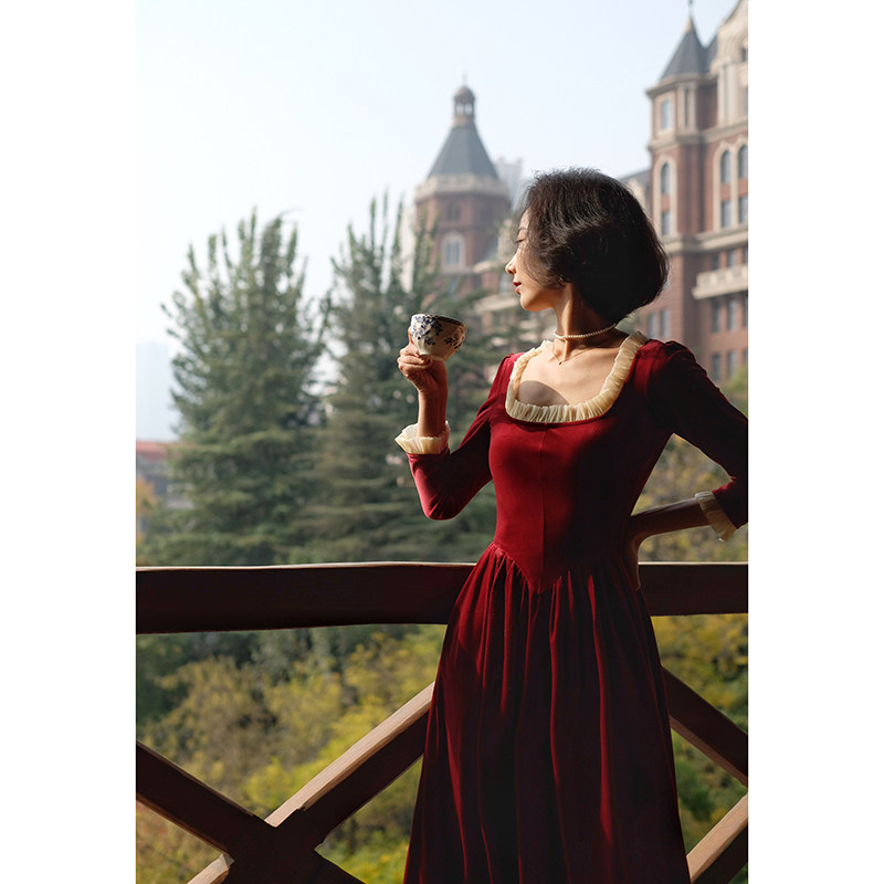 #Ching #复古赫本风 #宫廷古着Vintage裙 #油画感 #长款连衣裙