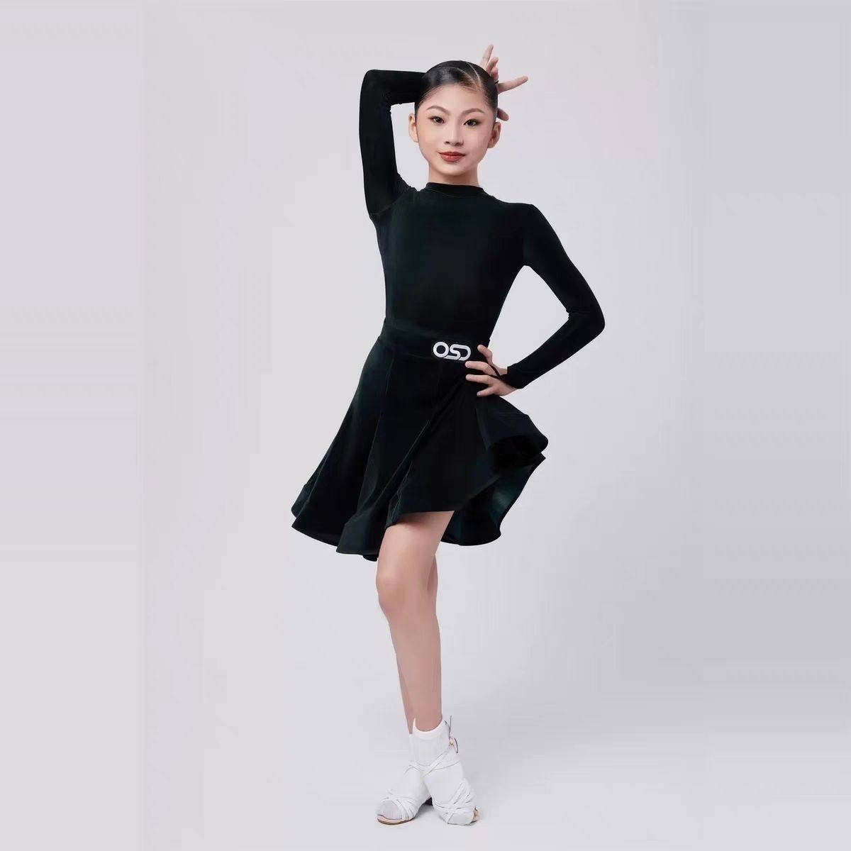 📚 OSD舞服夏季拉丁规定服丝绒包肩袖后V领拉丁赛服林意涵同款珠光料