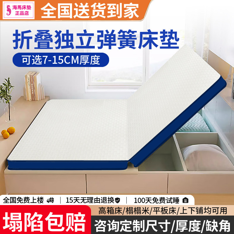 📚 香港海马折叠薄款独立弹簧床垫15CM席梦思学生宿舍儿童榻榻米10cm