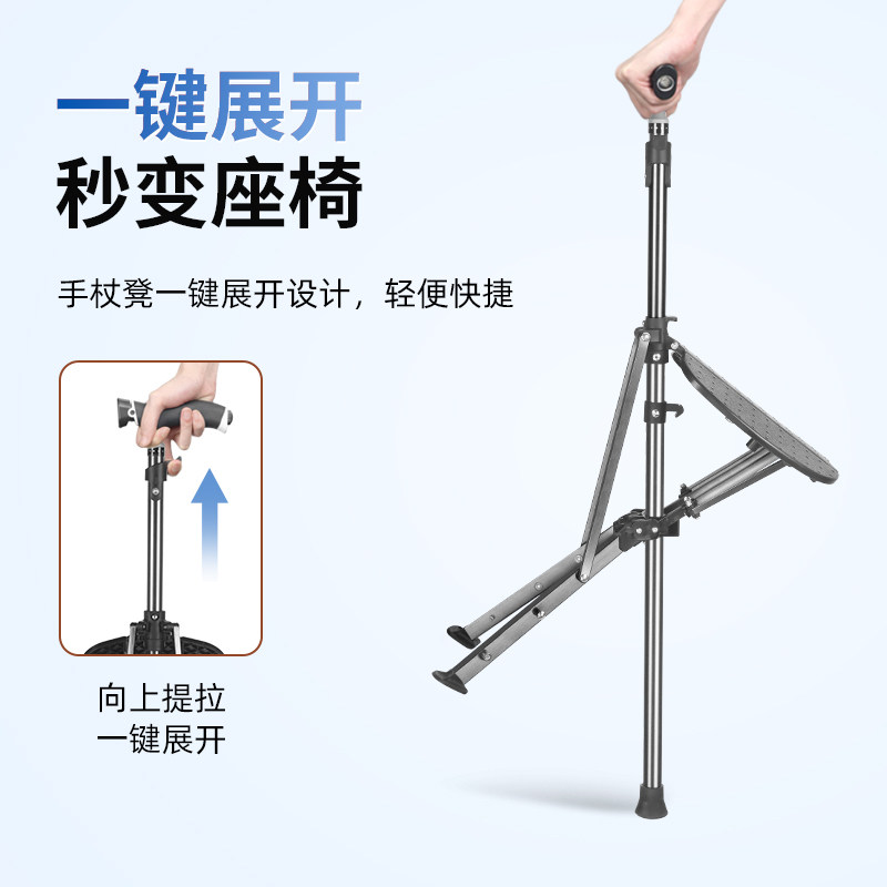 📚 一秒速开多功能拐杖凳助行拐杖凳折叠便携式可坐带凳子手杖