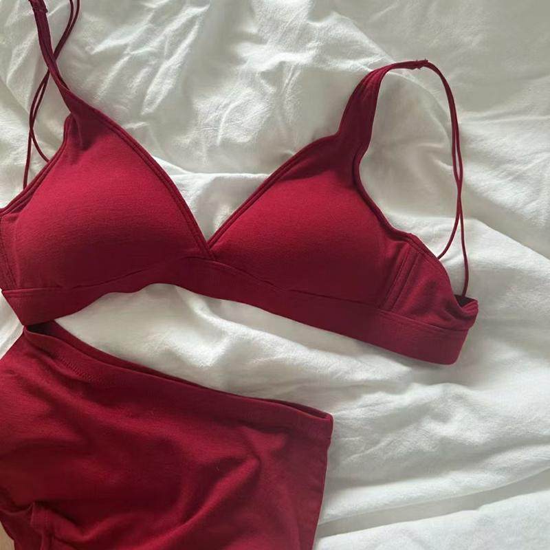 📚 红色内衣女本命年秋冬大胸显小无钢圈超显瘦龙年法式薄款文胸套装