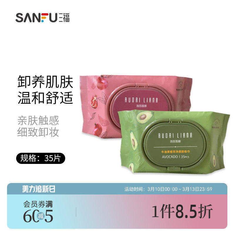 📚 量贩装三福洛丽莲娜净颜卸妆巾35片温和洁净便携卸妆湿巾432399