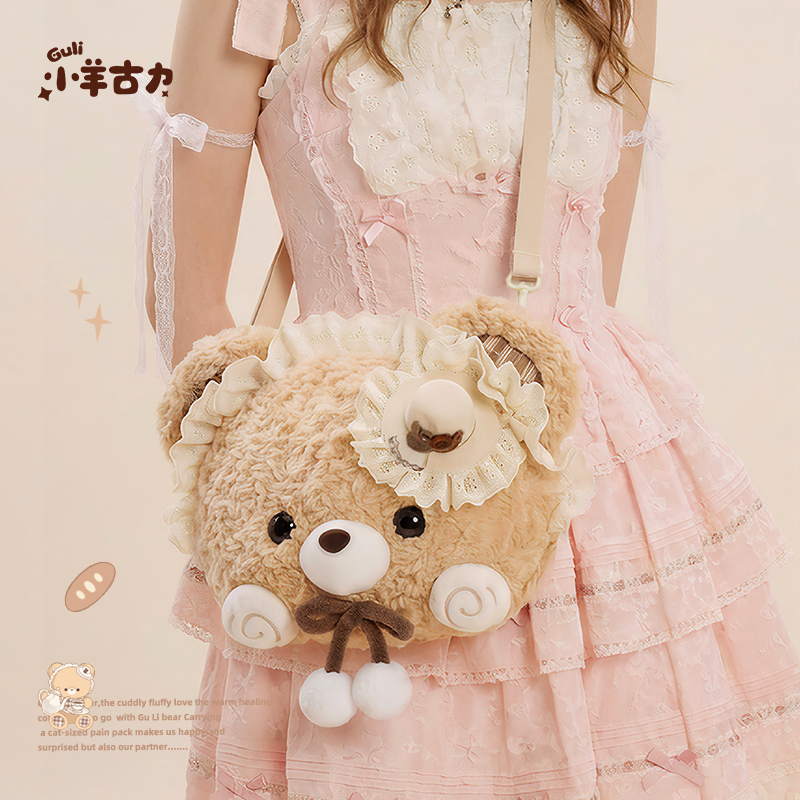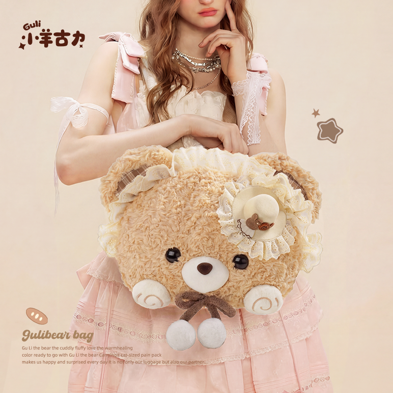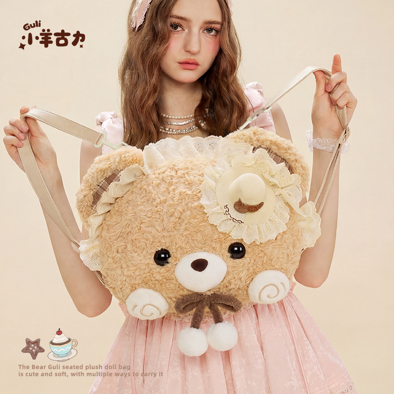 📚 【小羊古力&小熊古力】lolita可爱大脸斜挎包包毛绒玩偶双肩背包
