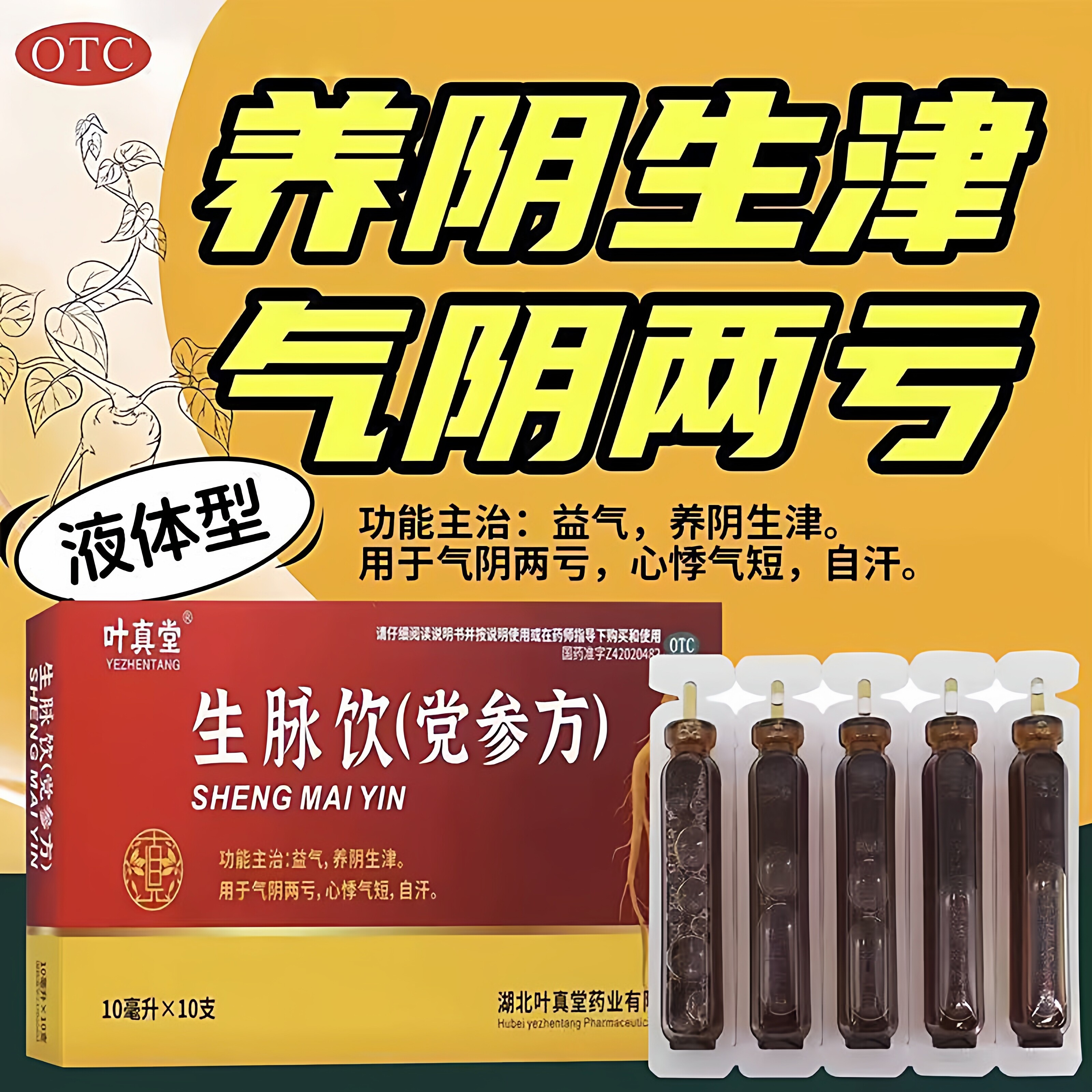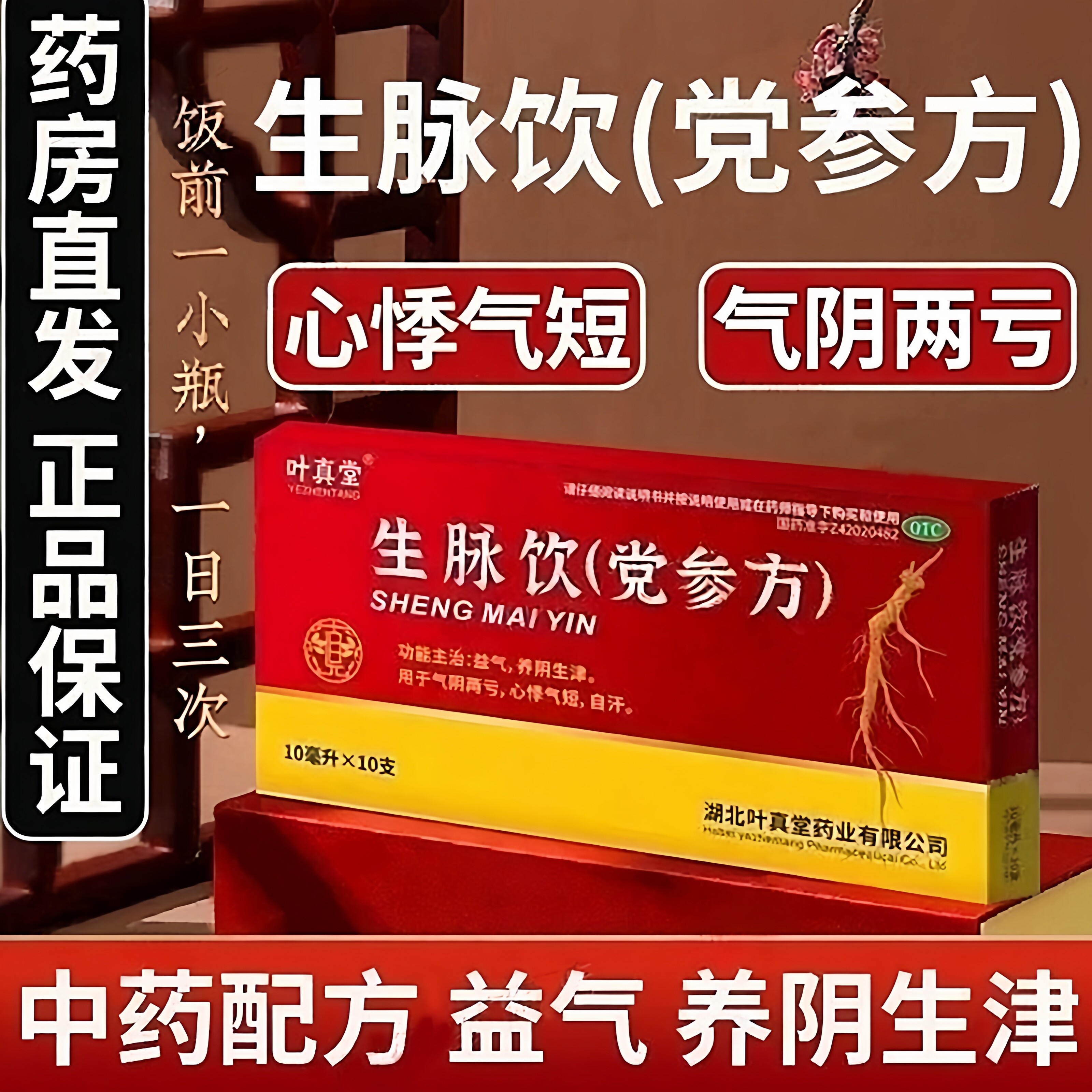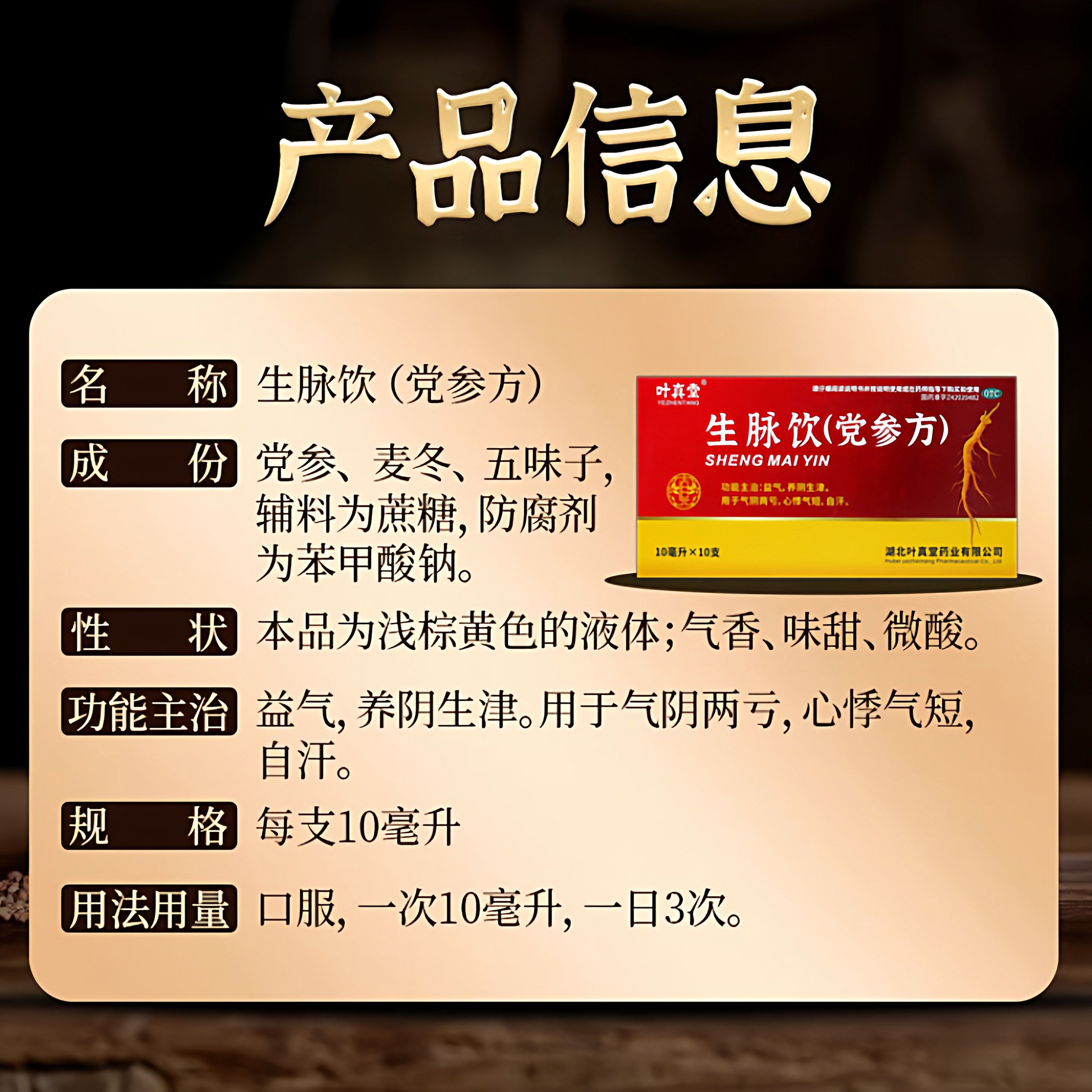 📚 叶真堂生脉饮(党参方)10ml*10支/盒益气养阴生津气阴两亏心悸气短