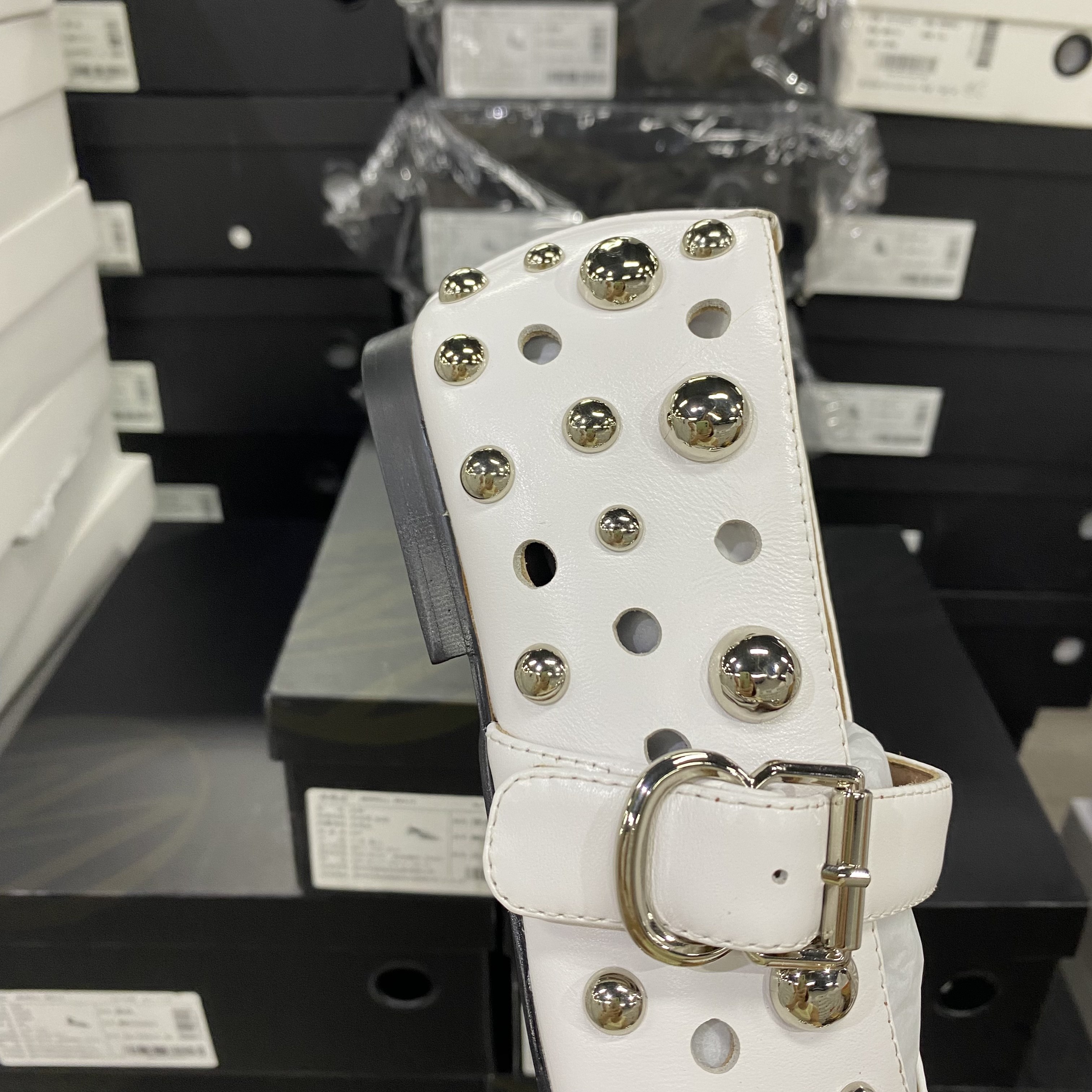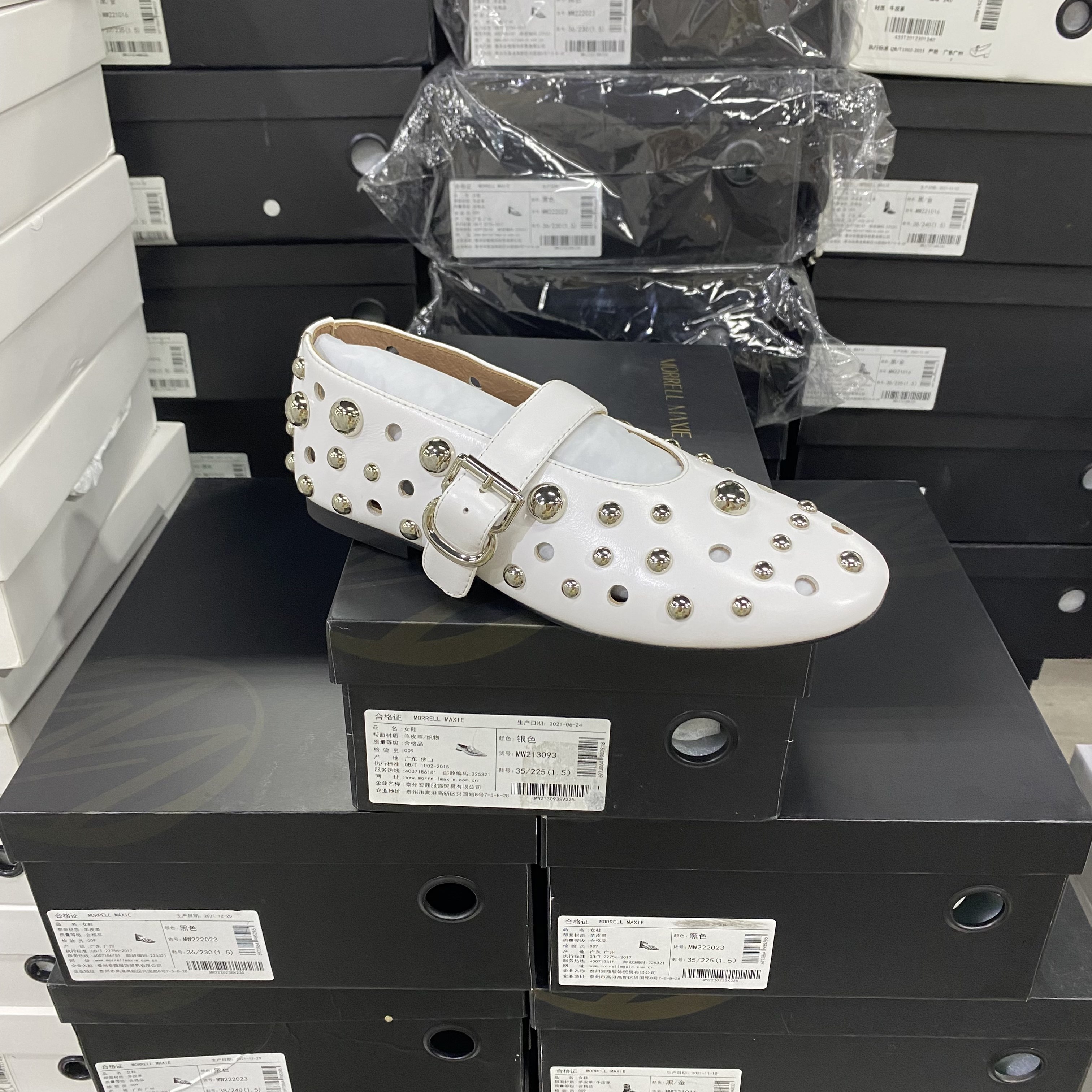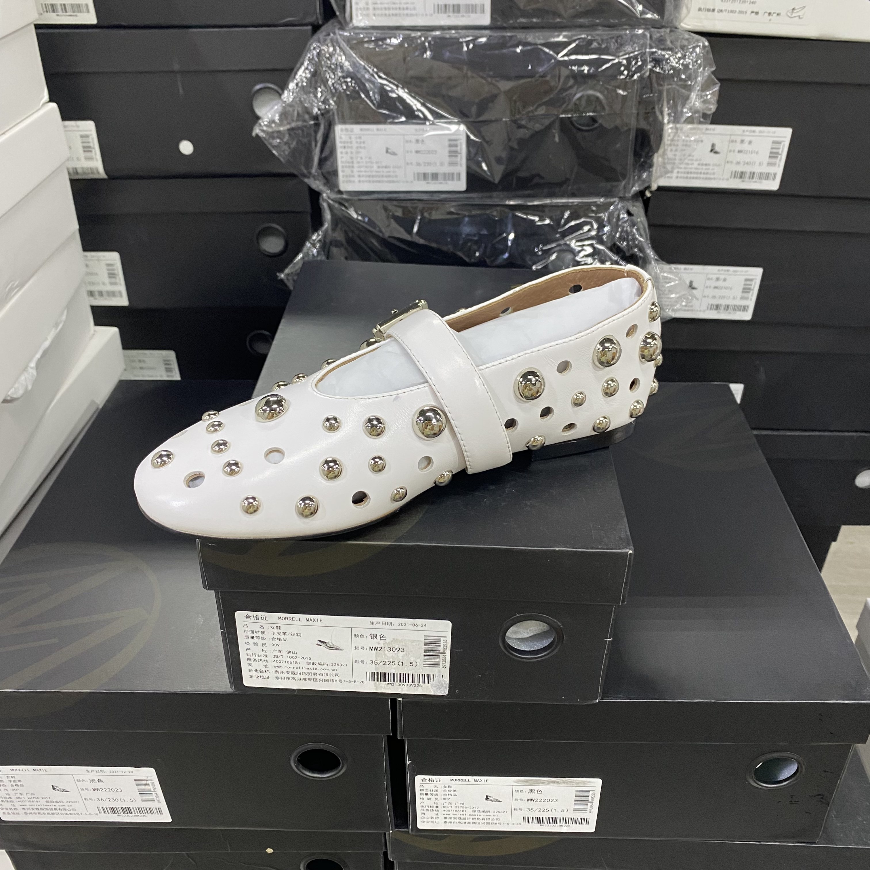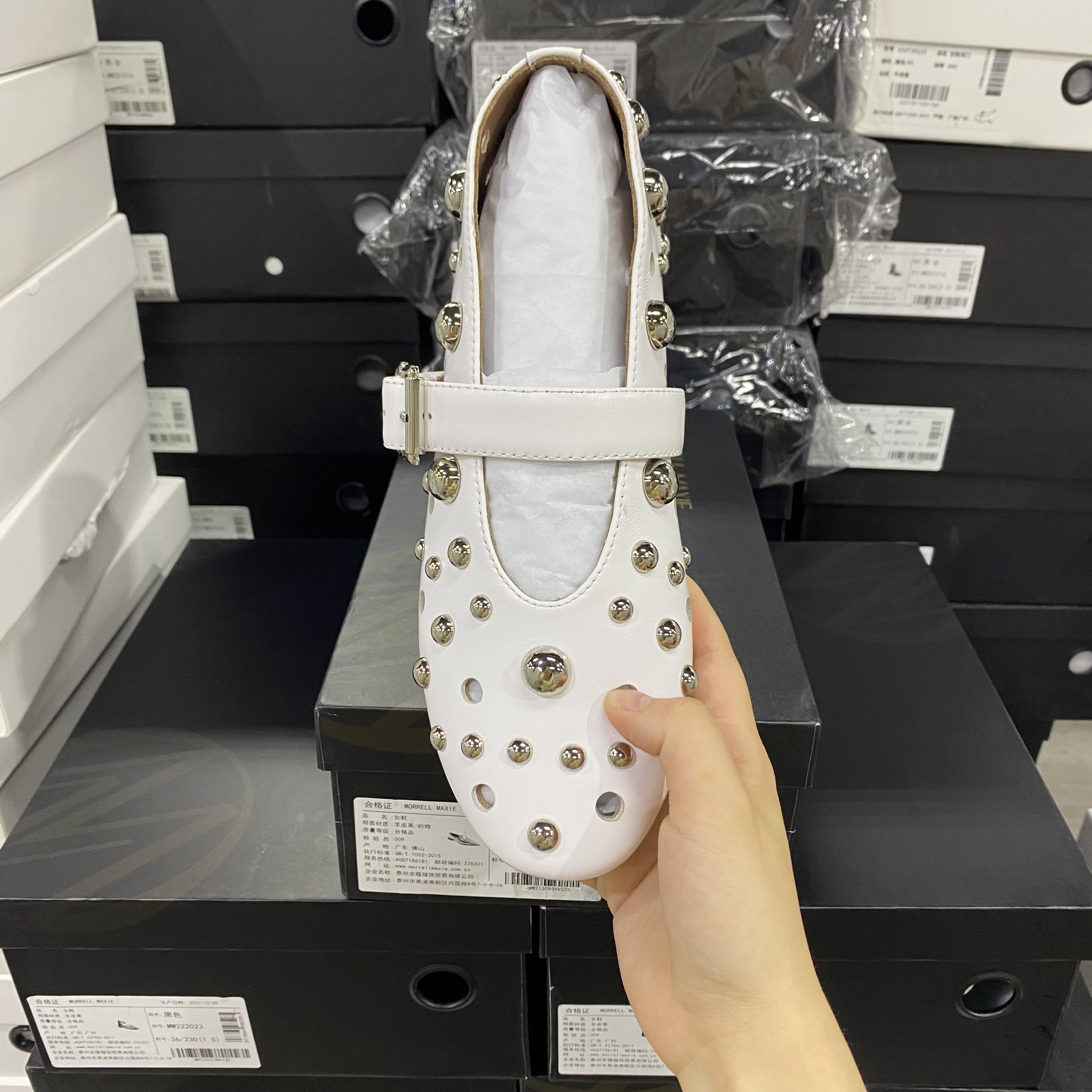 📚 店主推荐!欧洲设计师轻奢品牌羊皮镂空铆钉平底简约单鞋8988白色
