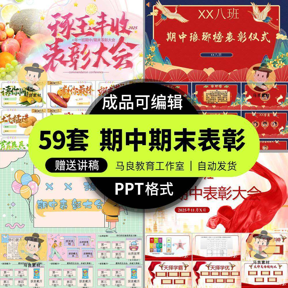 📚 期中期末考试表彰总结大会PPT模版中小学生表彰班级学校颁奖LC14