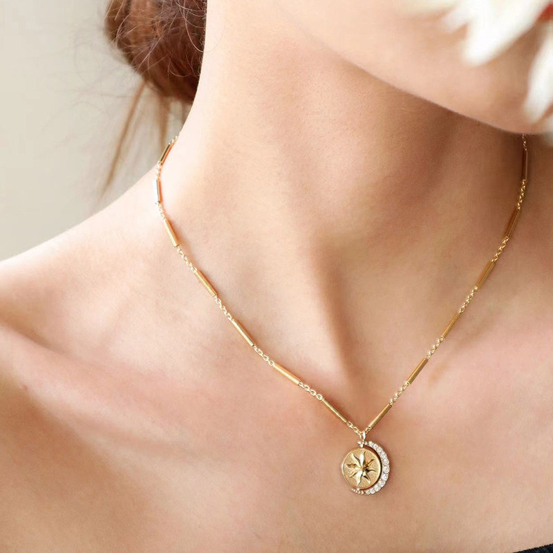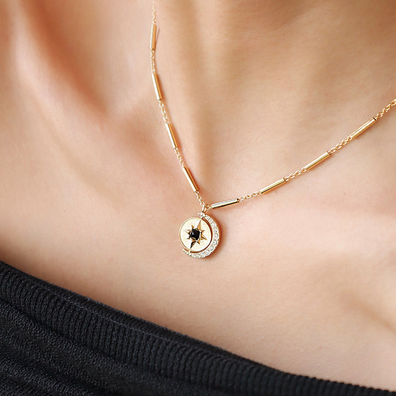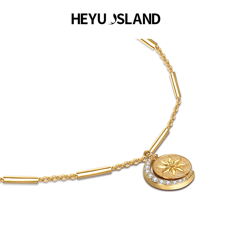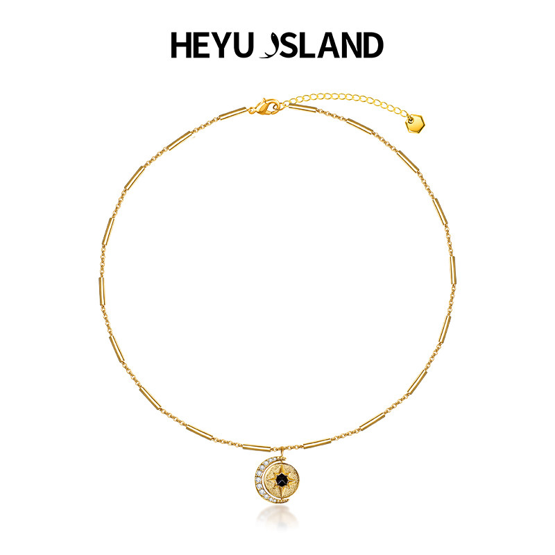 📚 梨涡允允推荐HEYUISLAND黑鱼岛日月同辉可转动太阳月亮吊坠项链女