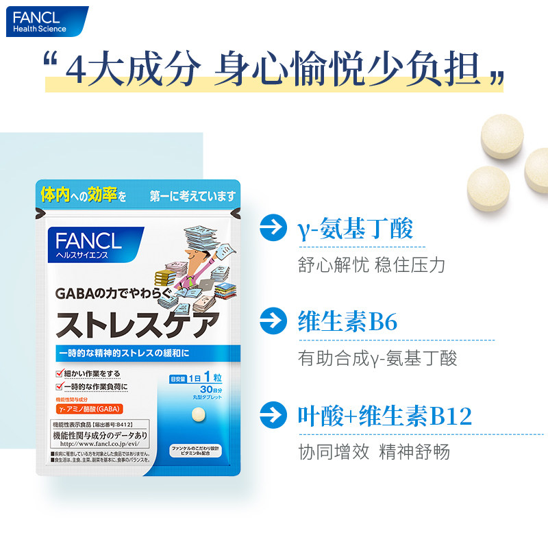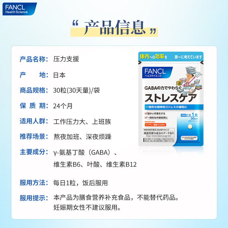 📚 FANCL压力支援30粒*2GABA维生素B叶酸释放舒缓情绪焦虑γ氨基丁酸