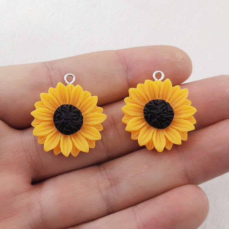 📚 极速JIaNDINSP 10pcs 27*24mm rend Sunflower Flower Resin char