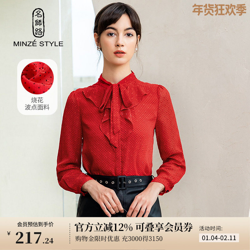 88¥ CZ028 c5afU7gnXza¥ https://m.tb.cn/h.7rN8rry 名师路红色衬衫女上衣秋新款荷叶边长袖薄款波点绑带直筒 --------------------- 【原售价】709元 【现售价】389元。